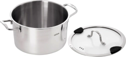 Stor, alsidig gryde af kvalitetsrustfrit stål med en diameter på 24 cm og en kapacitet på 6,2 l til daglig madlavning. Den har glaslåg med praktisk hældetud og silikondetaljer for sikker aftapning af vand. Takket være flerskuds-bund med aluminiumskerne fordeles varmen jævnt, den er egnet til gas, el, glaskeramik og induktion og kan også bruges i ovn op til 200 °C. Holdbart rustfrit stål 304, nem vedligeholdelse og mulighed for opvask i opvaskemaskine.