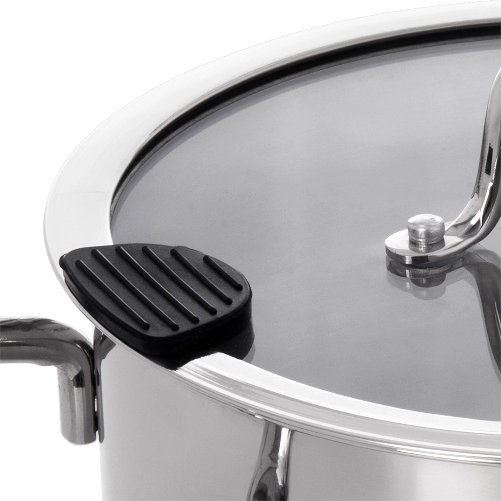 Låget af hærdet glas har indbygget si og silikondetaljer for et sikkert greb. Du kan nemt hælde vand fra pasta eller grøntsager uden ekstra redskaber.