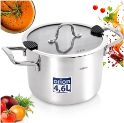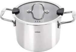 Den praktiske rustfri stålgryde VENICE med volumen 4,6 l og diameter 20 cm er ideel til daglig madlavning, simring og bagning. Takket være rustfrit stål 304, glaslåg med hældetud og flerlagsbund med aluminium tilbyder den jævn opvarmning, nem sigtning uden si og lang levetid. Velegnet til gas, el, keramiske kogeplader og induktion samt til ovn op til 200 °C.