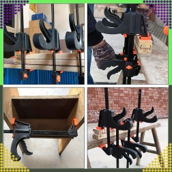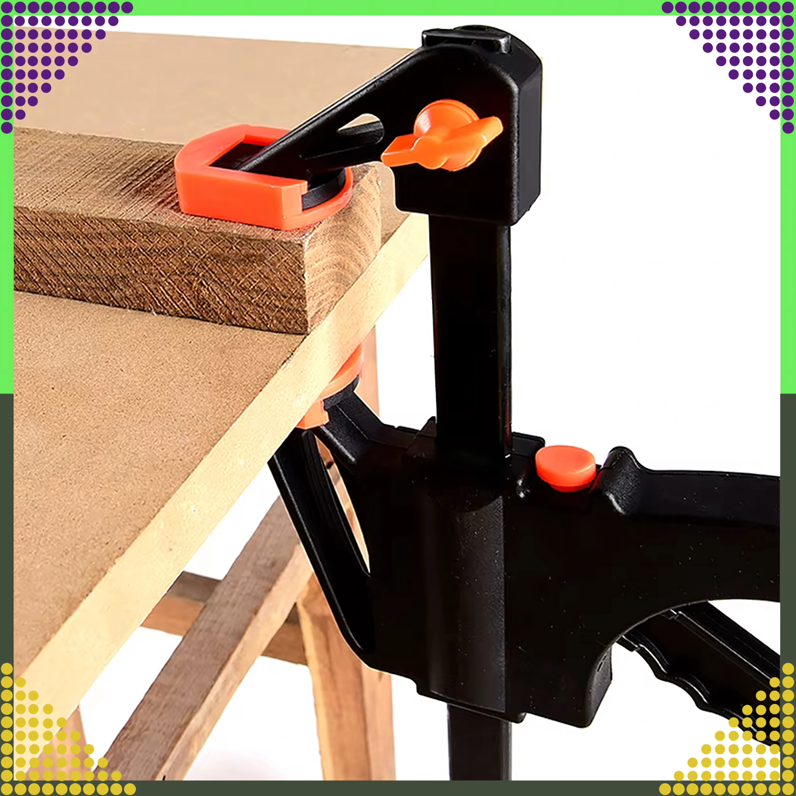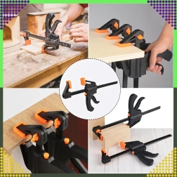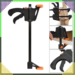 Denne robuste klemme kombinerer en slidstærk metalfører med et kraftigt plastikhus for lang levetid og pålidelig ydeevne ved limning, montage og fint finisharbejde. Den ergonomiske aftrækker sikrer glat og kraftig tilspænding med én hånd, mens de bløde kæbekapper beskytter emnet mod trykmærker og ridser.