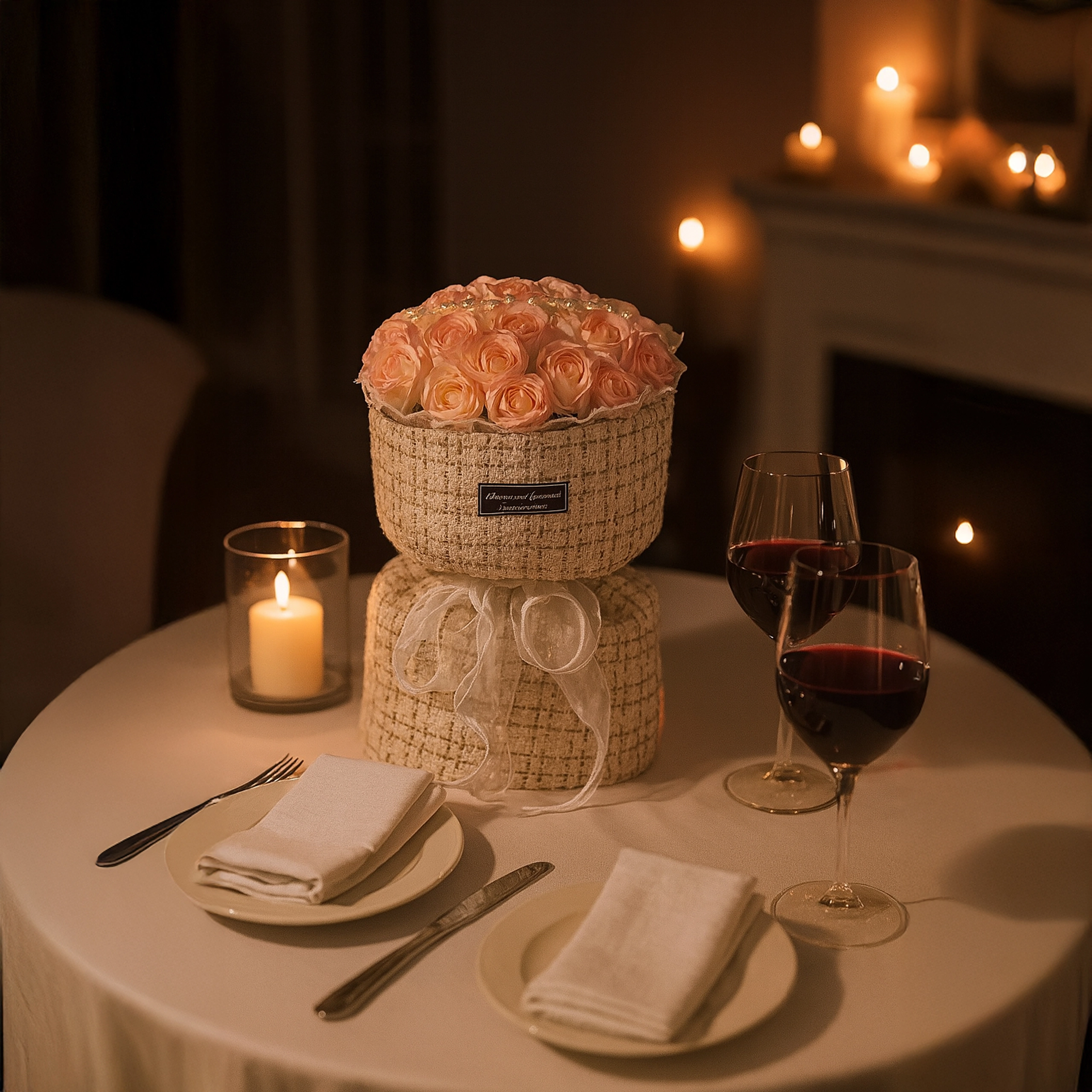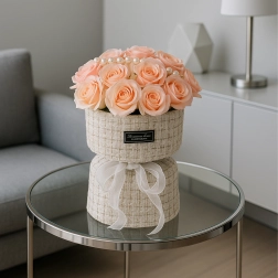 Æsken med diskret sløjfe og struktureret stofoverflade passer både i moderne og klassiske interiører. Det er en færdig gave – klar til at glæde. Perfekt til Valentinsdag, Kvindernes Internationale Kampdag, jubilæer, bryllupper og fødselsdage.