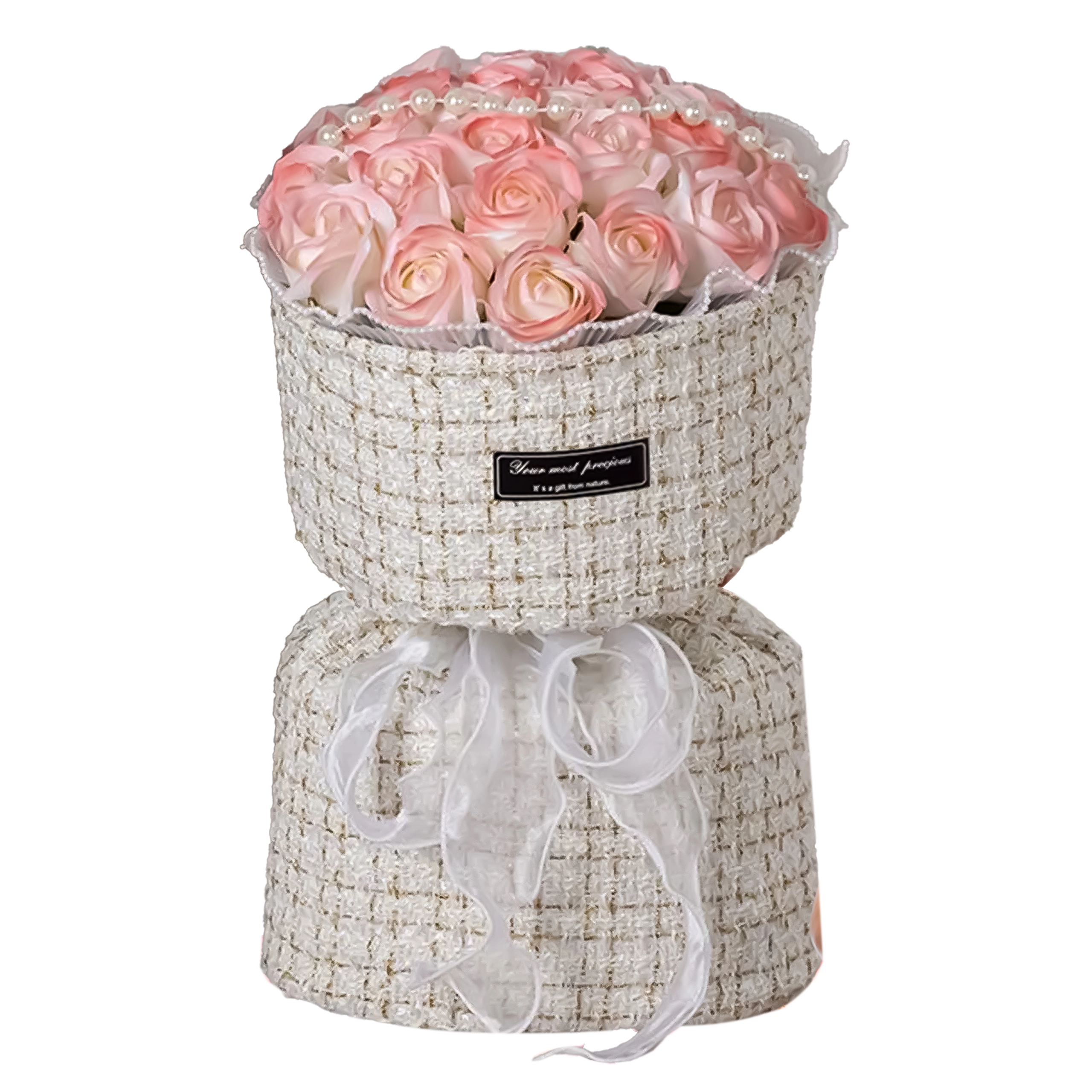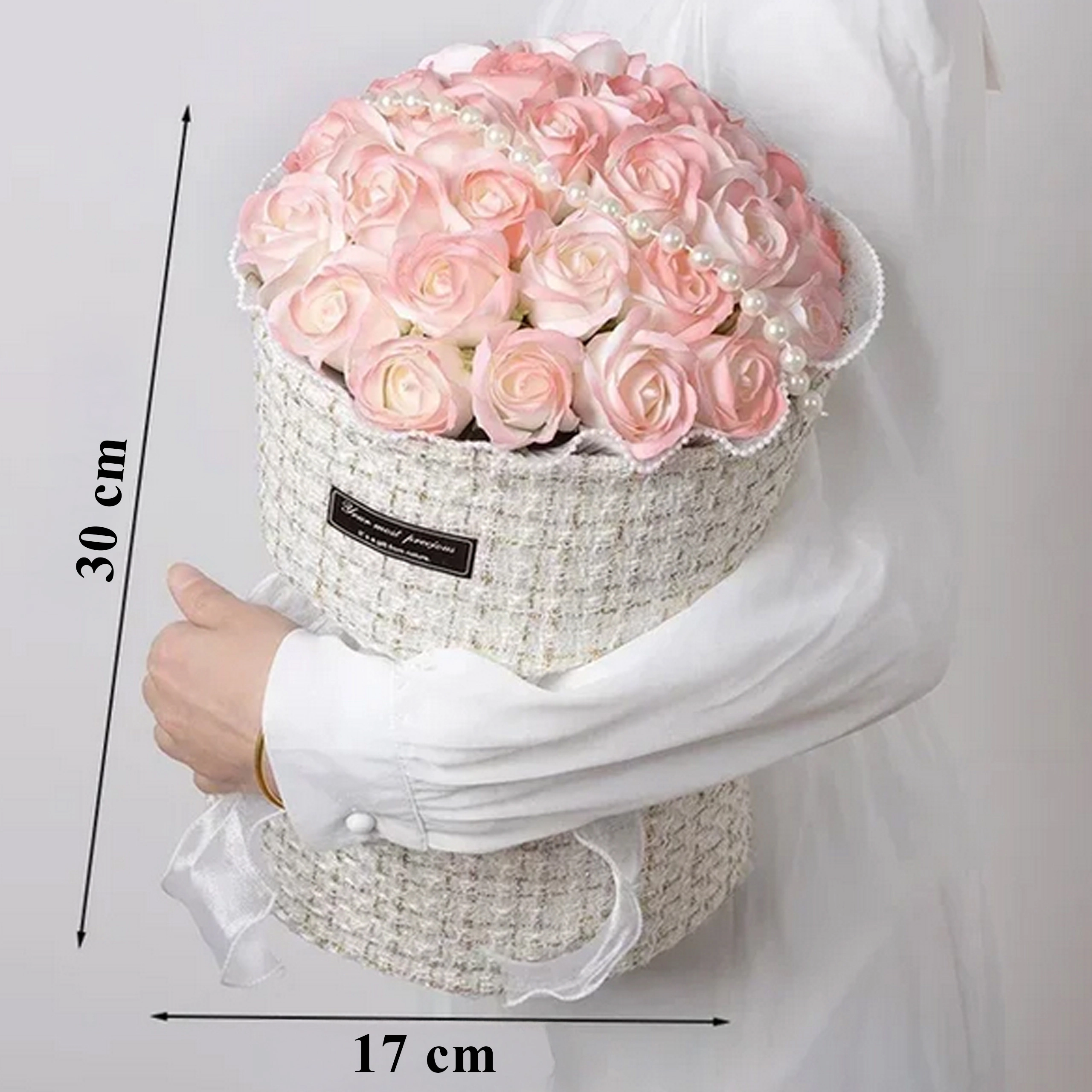 - Luksuriøst udseende – realistiske blomster, blide farver, dekorative perler.