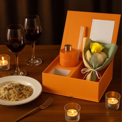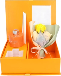 Et elegant gavesæt, der forener duft og design: en appelsinduft diffuser med pinde til kontinuerlig duft i hjemmet og dekorative roser som et fint supplement. Ideelt som gave til Kvindedagen, Valentinsdag eller som tak til lærere – forkæler sanserne, skaber hygge i interiøret og efterlader en langvarig frisk aroma.