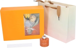Dette stilfulde gavesæt er gennemtænkt til at begejstre ved første øjekast og første indånding. Glasdiffer med rattanpinde spreder en behagelig appelsinduft, der skaber en rolig atmosfære i soveværelse, badeværelse og arbejdsværelse. Der medfølger en elegant gaveæske med vindue og en smagfuld dekorativ rosenbuket – klar til at blive givet med det samme.