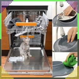 - Let vedligeholdelse: skålene tåler opvaskemaskine, måtten kan aftørres