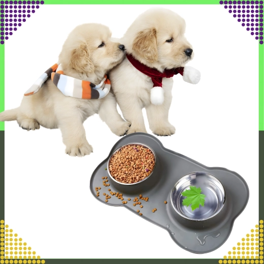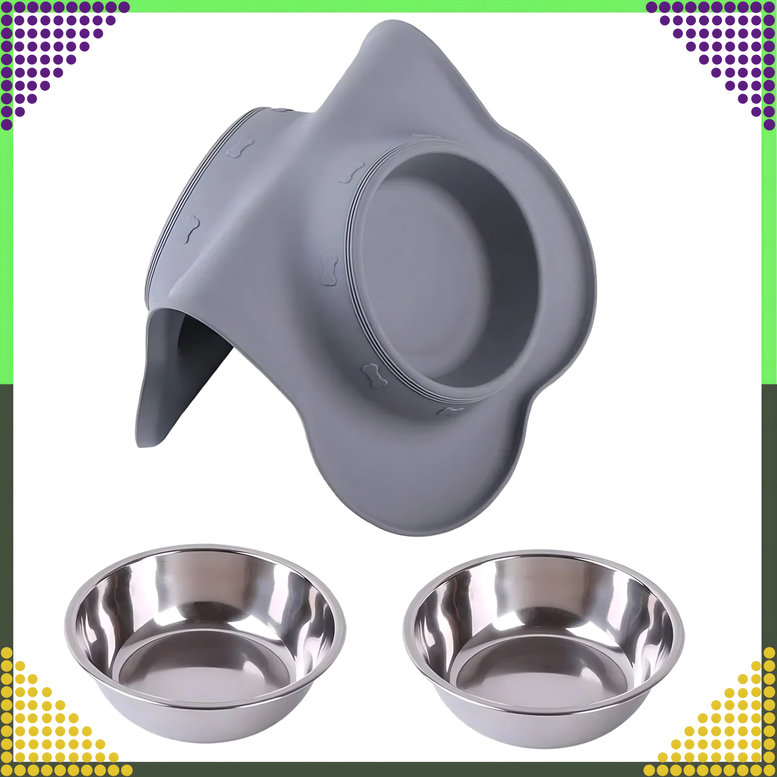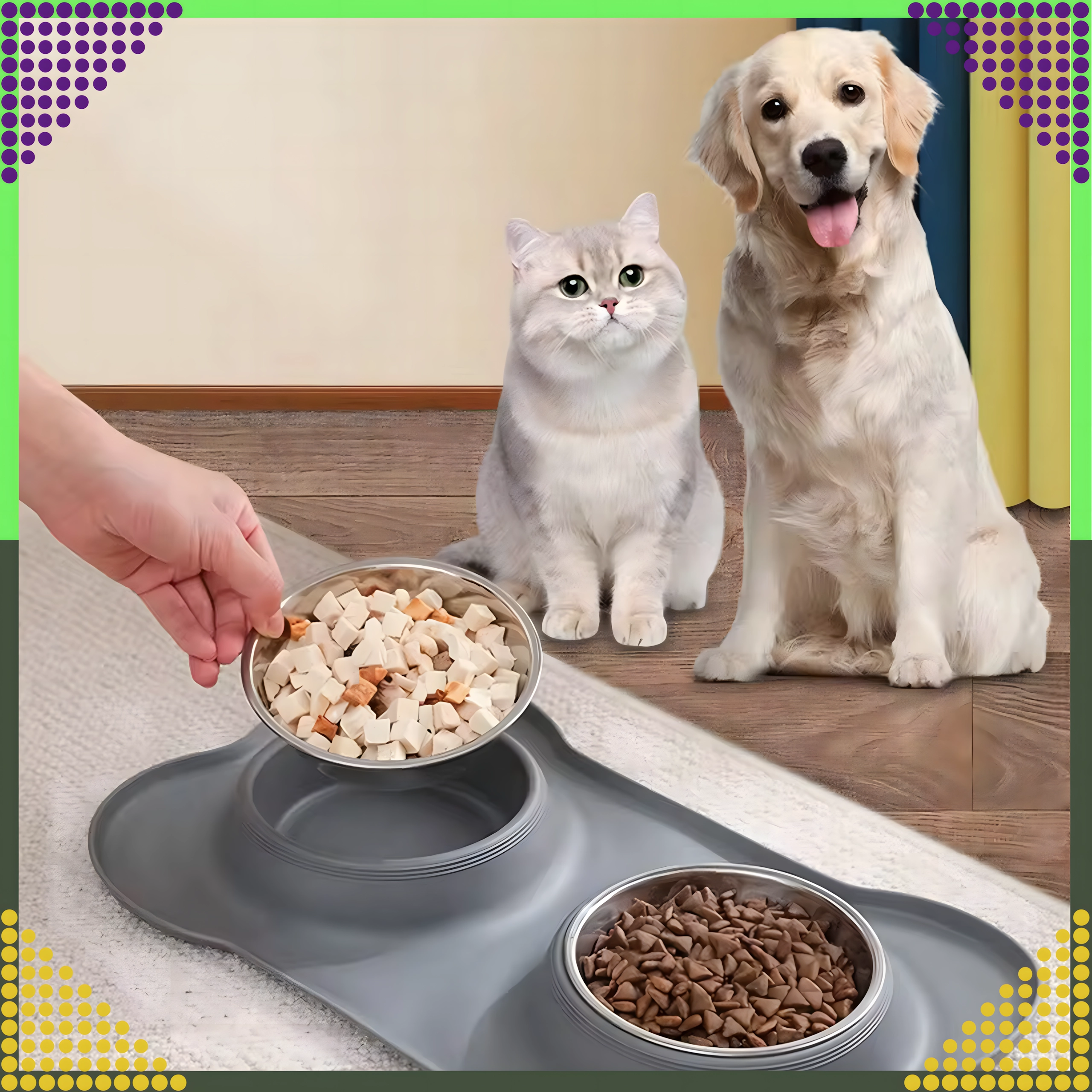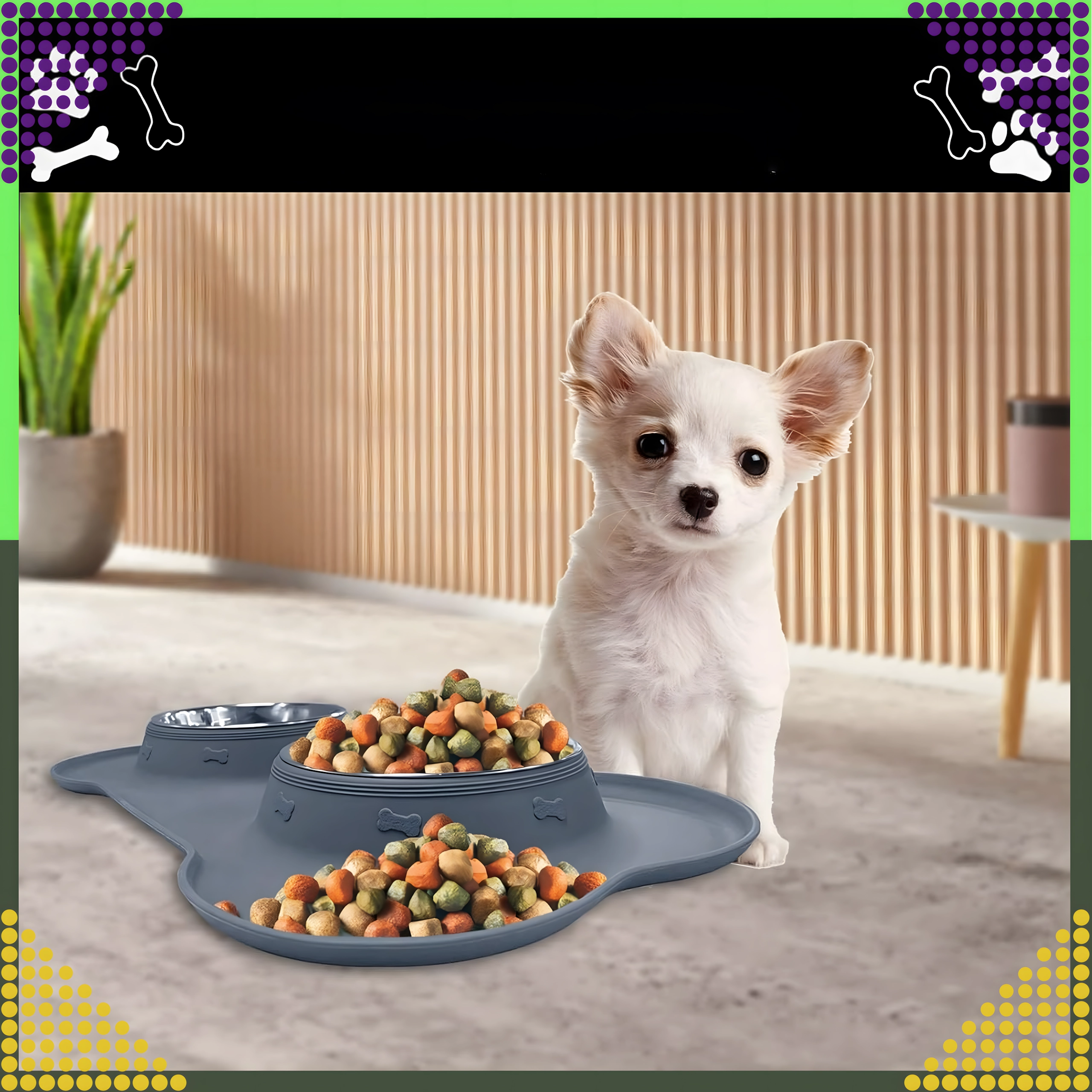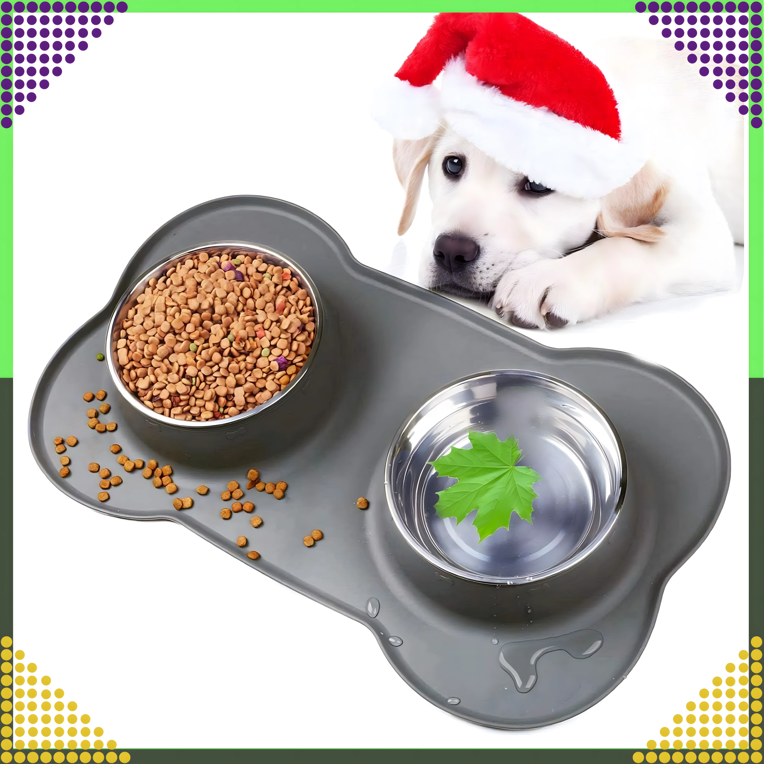 Praktisk dobbelt skål til både hunde og katte med en kapacitet på 2 × 450 ml, der kombinerer to aftagelige skåle i rustfrit stål og en skridsikker silikonemåtte formet som et ben. Måtten hjælper med at begrænse spild, holder skålene på plads og gulvet rent og tørt. Skålene kan tåle opvaskemaskine, og hele sættet er let at vedligeholde.