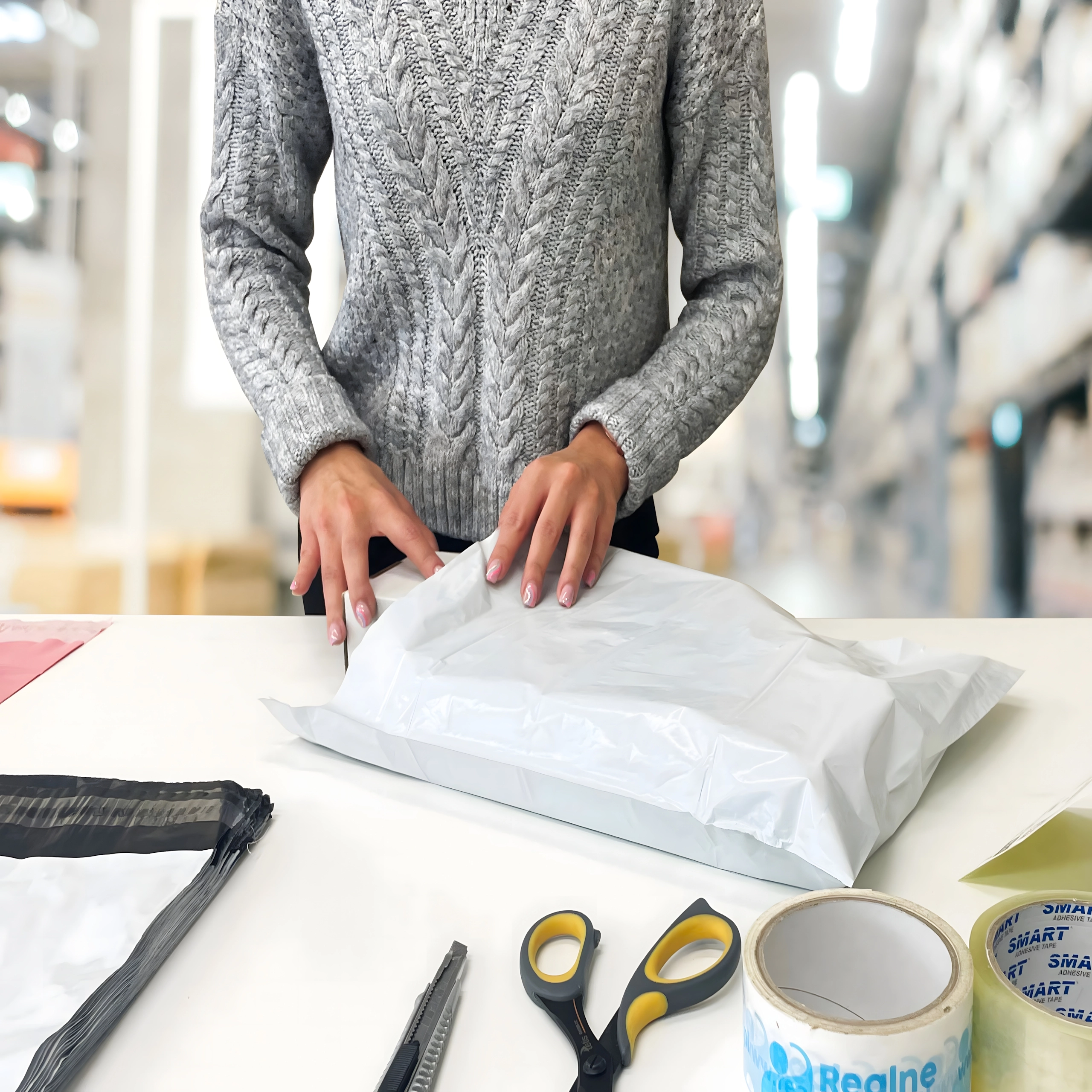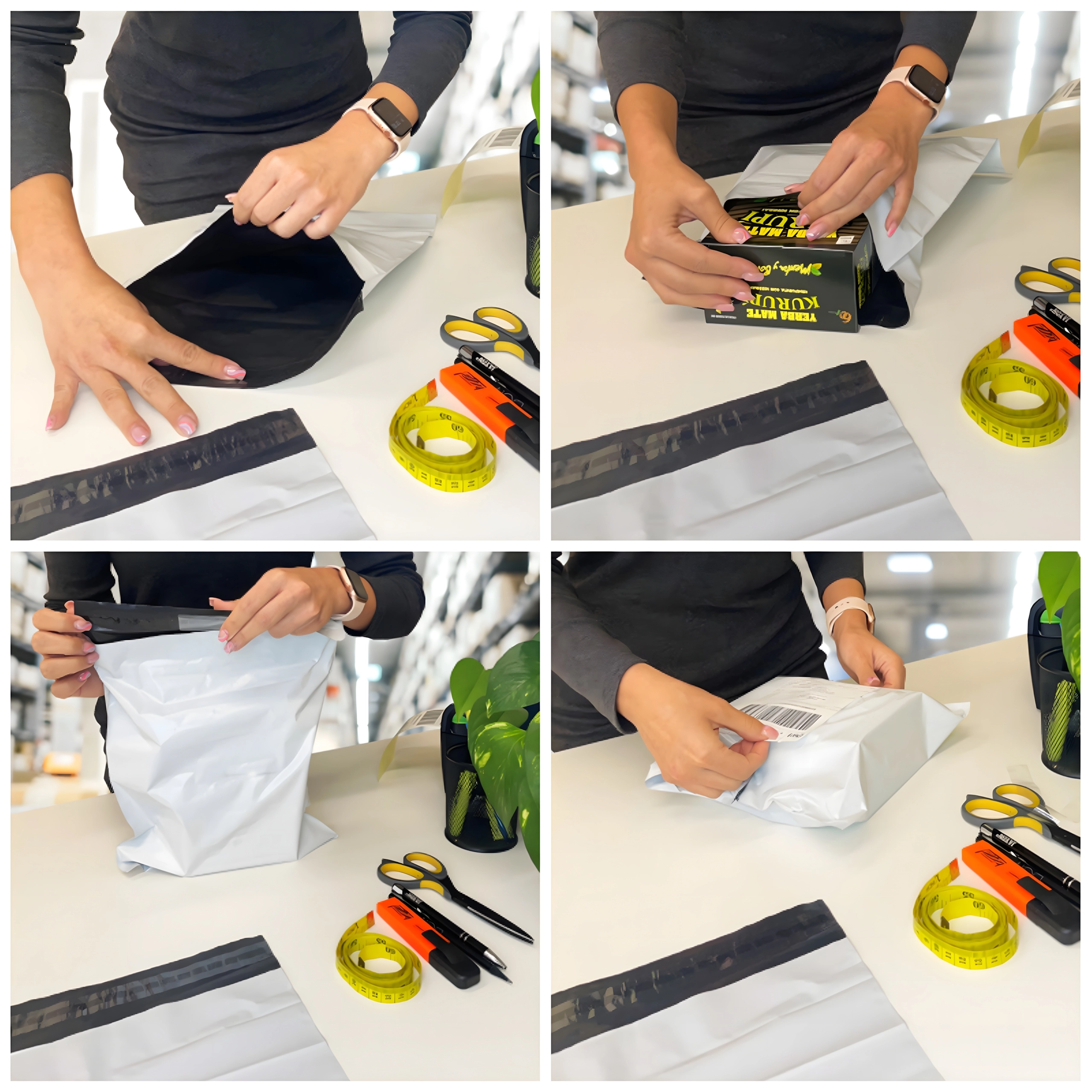 Højkvalitets poly mailers i størrelsen 600 × 800 mm er et glimrende valg til pakning af tekstiler, tilbehør og andre mere voluminøse produkter. Den selvklæbende peel-and-seal tape accelererer pakkeprocessen og skaber manipulationssikring mod uønsket åbning. Den hvide overflade er egnet til tryk og labels, det sorte indre beskytter privatlivet.