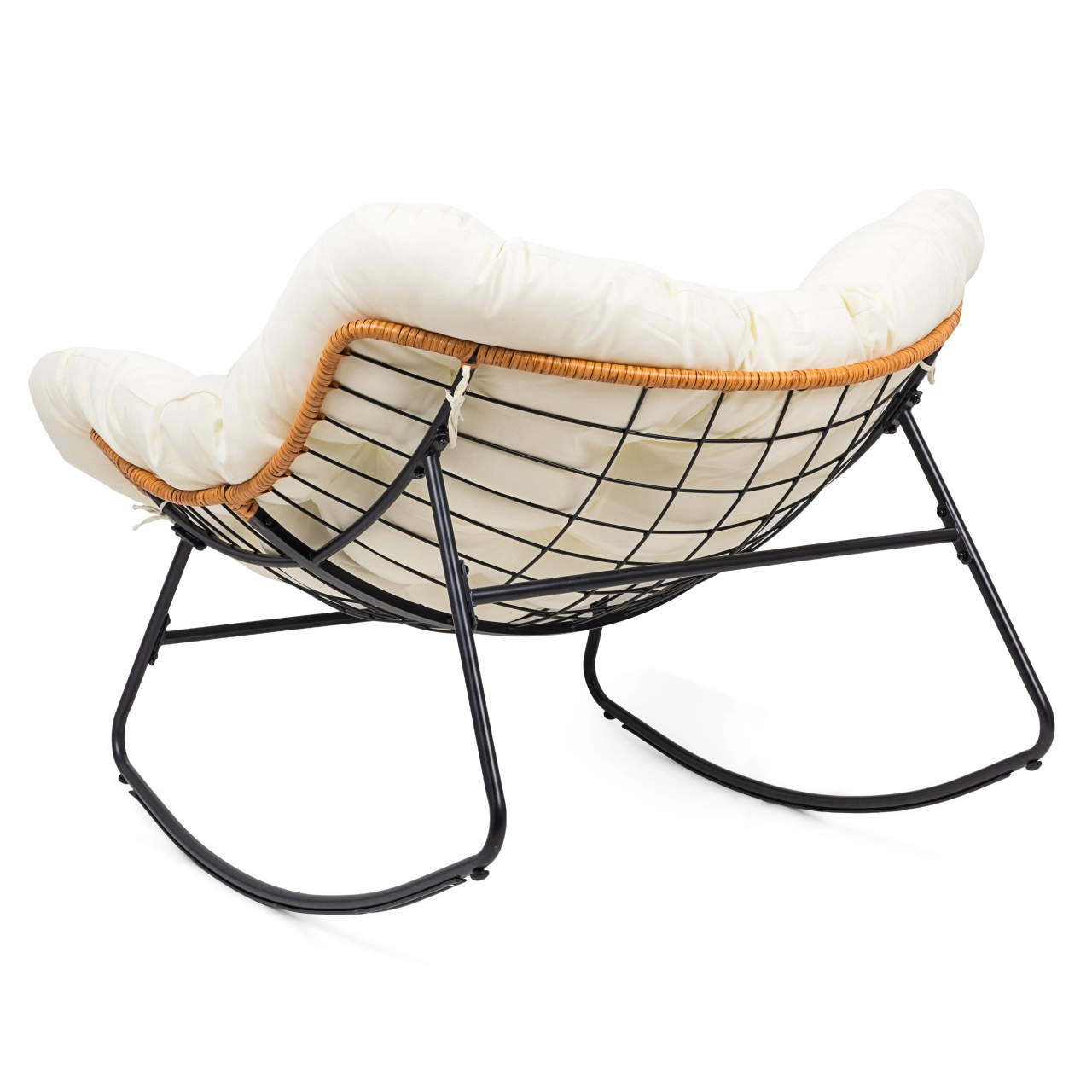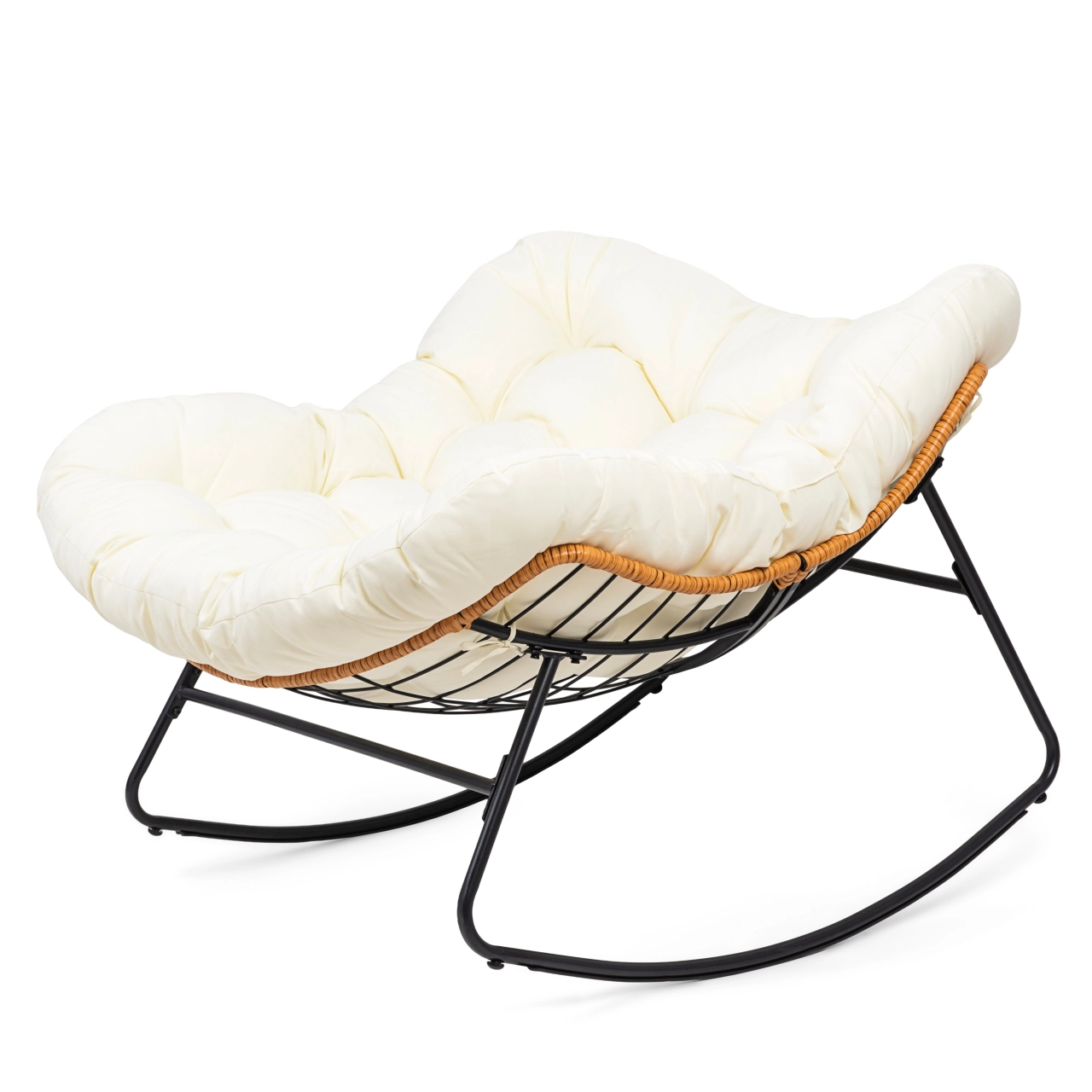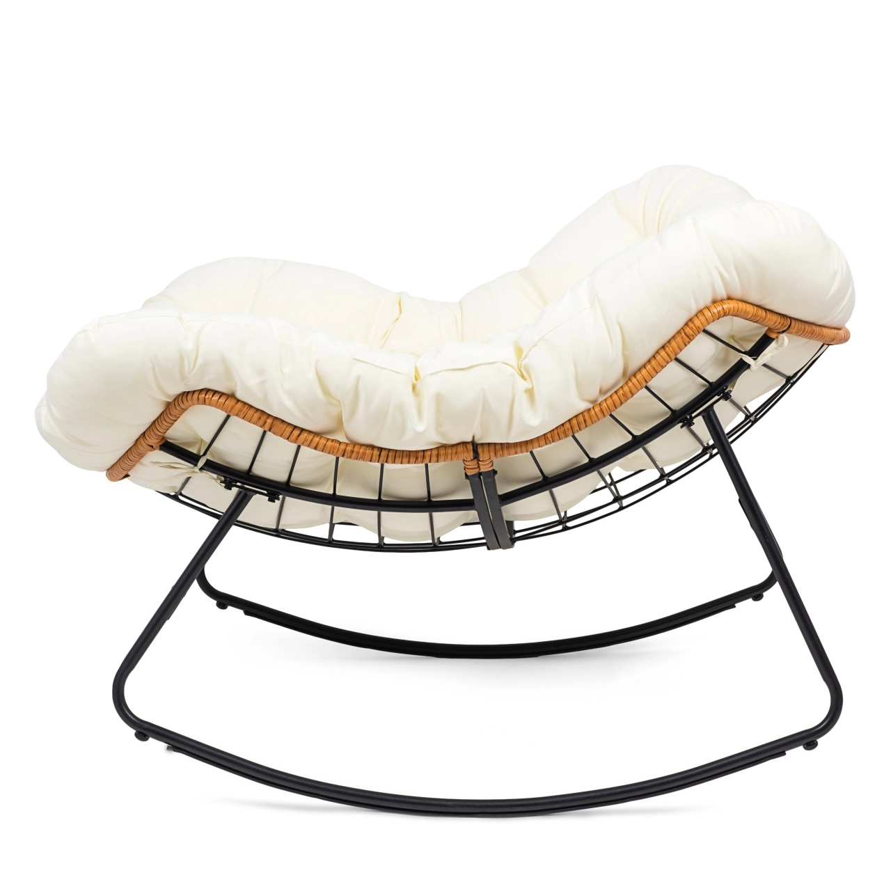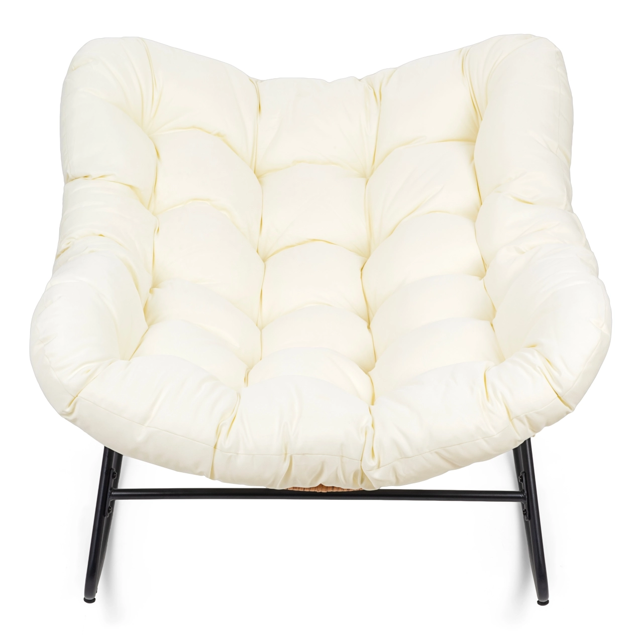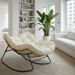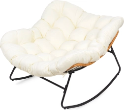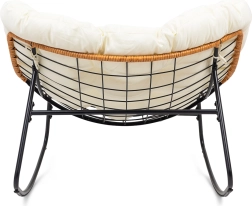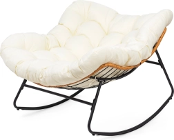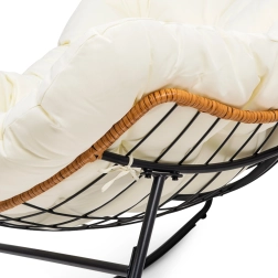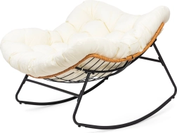 Opdag din private afslapningszone: XL-gyngestolen tilbyder dyb, redeagtig komfort, blid gyngen til både læsning og hvile samt en neutral beige, der let passer ind i enhver indretning. Stabil metalramme, blød, quiltet pude og luftig openwork-skal med rattan-accent understreger den lette scandi-æstetik.