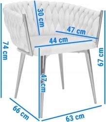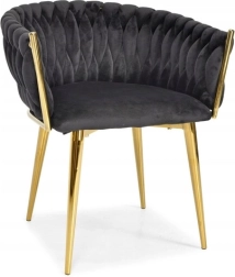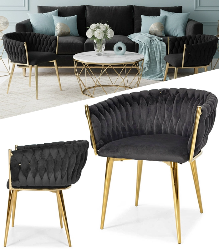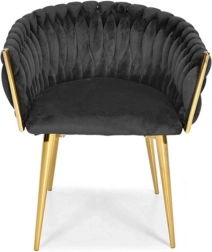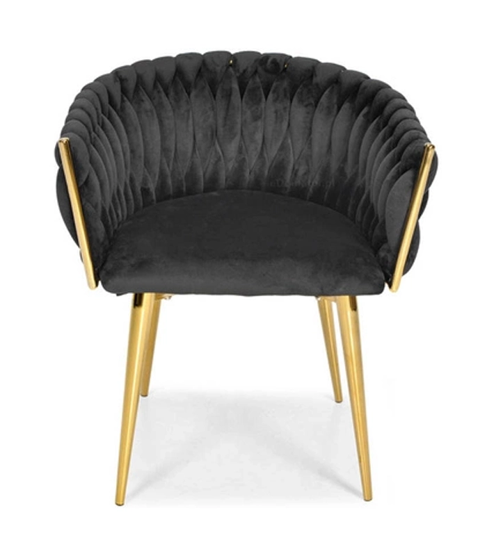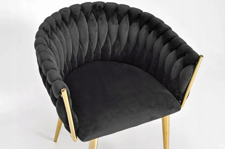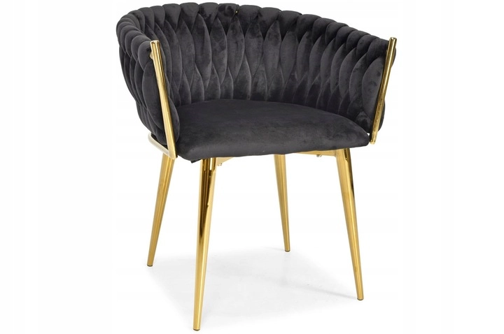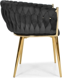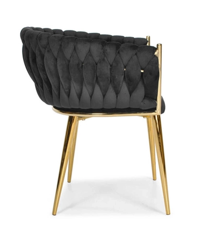 Det gennemarbejdede, flettede quiltede ryglæn omfavner ryggen behageligt og sikrer sammen med det bløde, ca. 7 cm tykke sæde komfort ved længere siddetid. Den gyldne metalramme er samtidig stærk og stabil med en bæreevne på op til 130 kg.