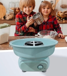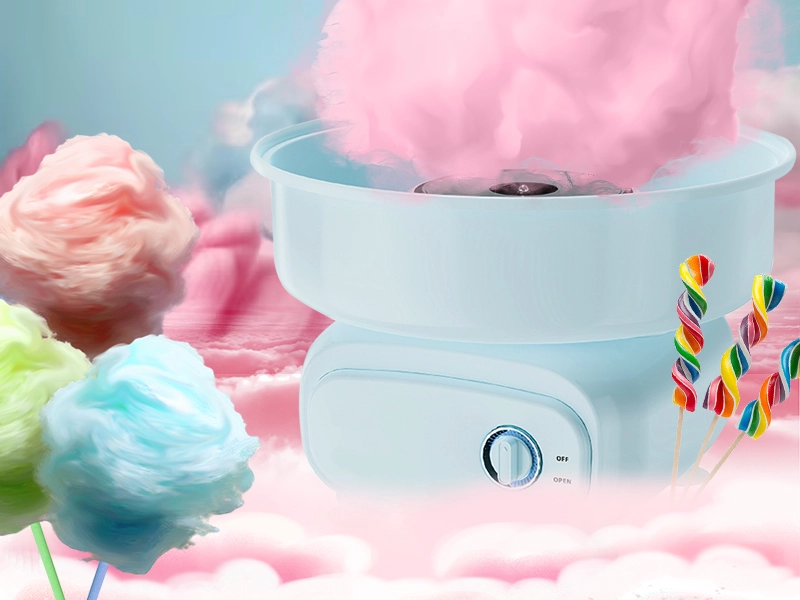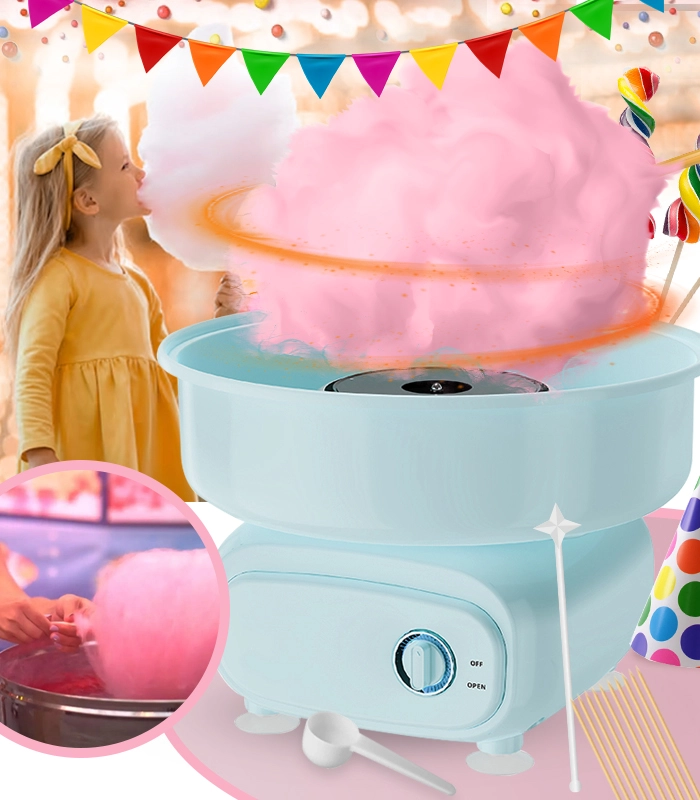 Hæld sukker i, tænd, og se de første fine tråde danne sig. Takket være jævn opvarmning får du stor og dejligt luftig candyfloss – også af farvet sukker. Perfekt til børn og nostalgisk for voksne.
