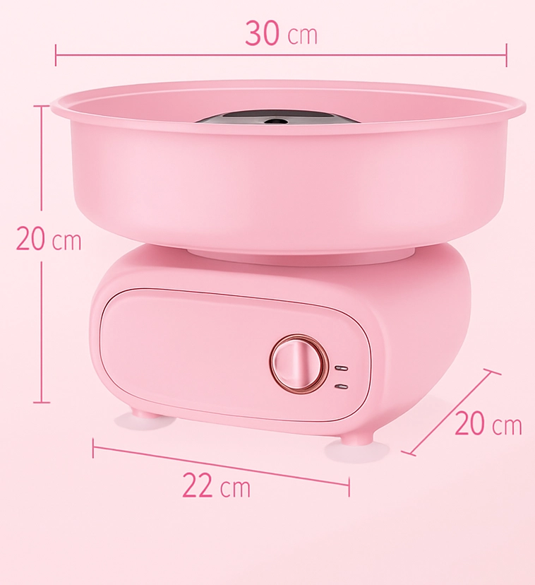 Sød glæde for både børn og voksne lige hjemme hos jer. Det stilfulde rosa design passer flot ind i det moderne køkken og legehjørnet og skaber straks en festlig stemning. Hæld en teske sukker i, tænd, og begynd at spinde luftig sukkerspind efter få sekunder.