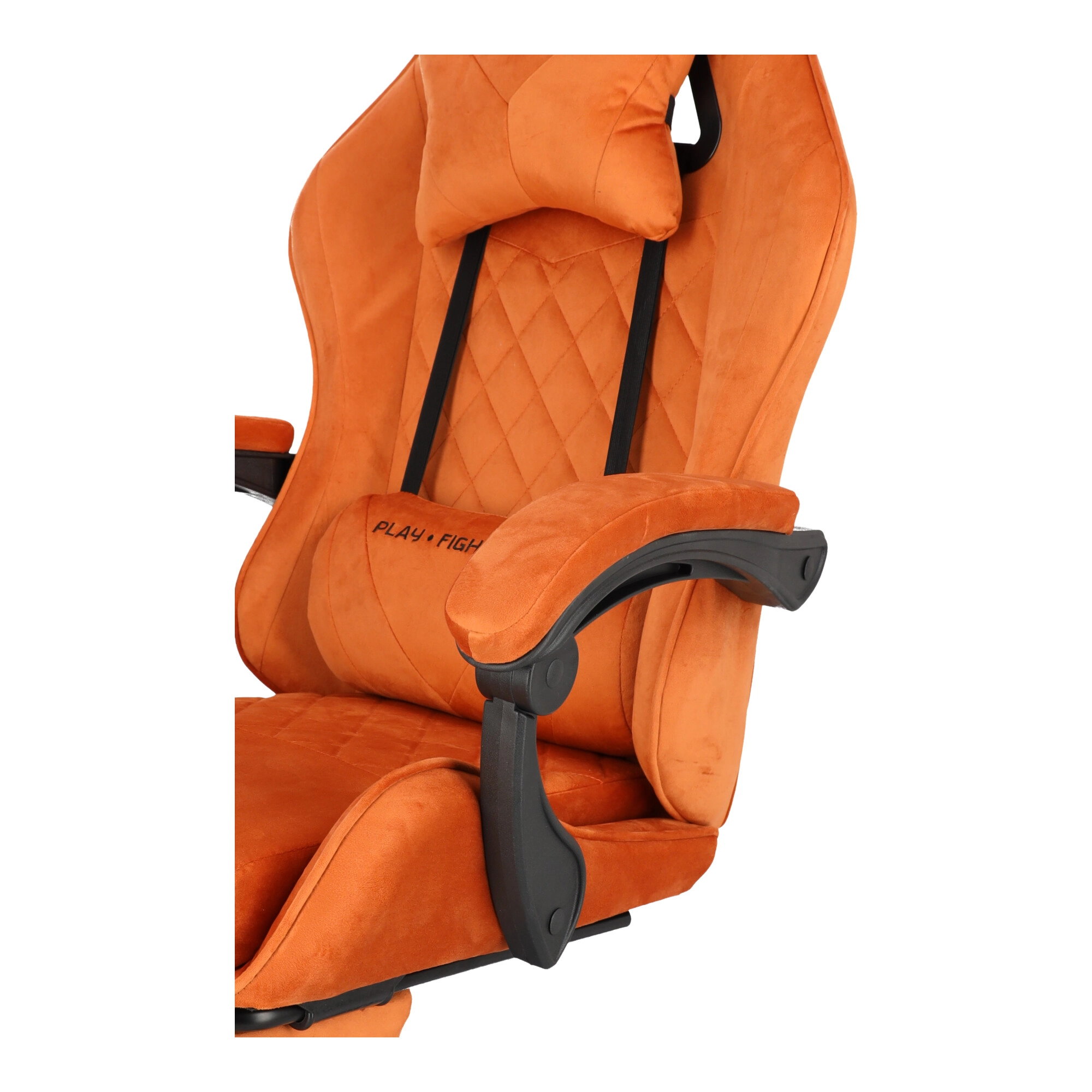 Nyd den komfort og støtte, du behøver til både lange gamingmaraton og en hel arbejdsdag. Stolen udmærker sig ved blød velourpolstring i en varm brun nuance, ergonomisk formet ryglæn og skålformet profil for bedre kropsstabilisering. Den integrerede udklappelige fodstøtte og ryglænstilt op til 145° lader dig skifte fra performance til afslapning på få sekunder.