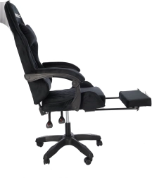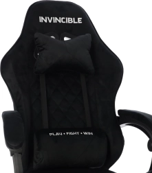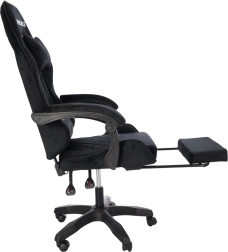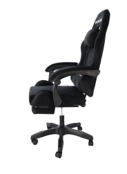 En stilfuld gamingstol med polstring i sort velour, der kombinerer komfort og elegant udseende. Det ergonomisk formede ryglæn, nakkepude og lændestøtte understøtter korrekt kropsholdning. Takket være højdejustering, ryglænstilting op til 145°, 360° rotation og udtrækkelig fodstøtte finder du let den ideelle position til gaming, arbejde og afslapning. Den stabile femstjernede base med hjul sikrer jævn bevægelse og bæreevne på 130 kg.