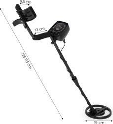 Den ergonomiske konstruktion med skridsikkert skumhåndtag og justerbar skaftlængde giver behagelig afsøgning af terrænet. Den vandtætte spole med 19 cm diameter klarer vådt græs, fugtig sandstrand og lavt vand, mens akustiske signaler og analog viser hjælper med præcis lokalisering af fundet.
