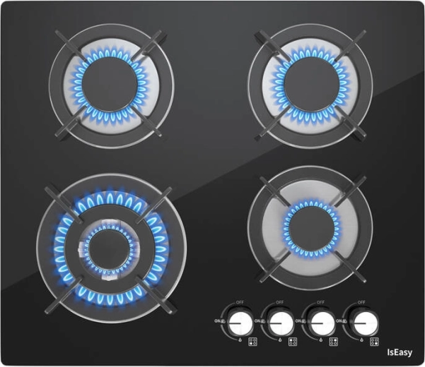 IsEasy-kogepladen kombinerer moderne udseende med topfunktionalitet. Glasoverfladen giver køkkenet et elegant præg og er meget let at vedligeholde – det er nok at tørre af med en fugtig klud. Placeringen af brændere (1× 1 kW, 2× 1,75 kW, 1× 3,3 kW) giver fleksibilitet til hverdagsmadlavning fra mild opvarmning til intensiv stegning.