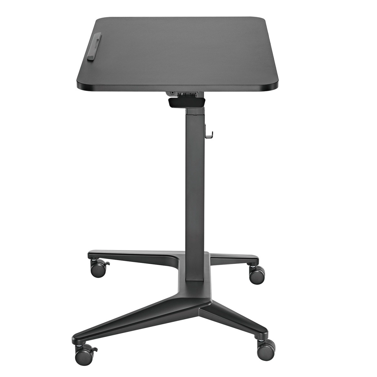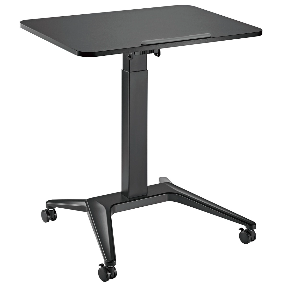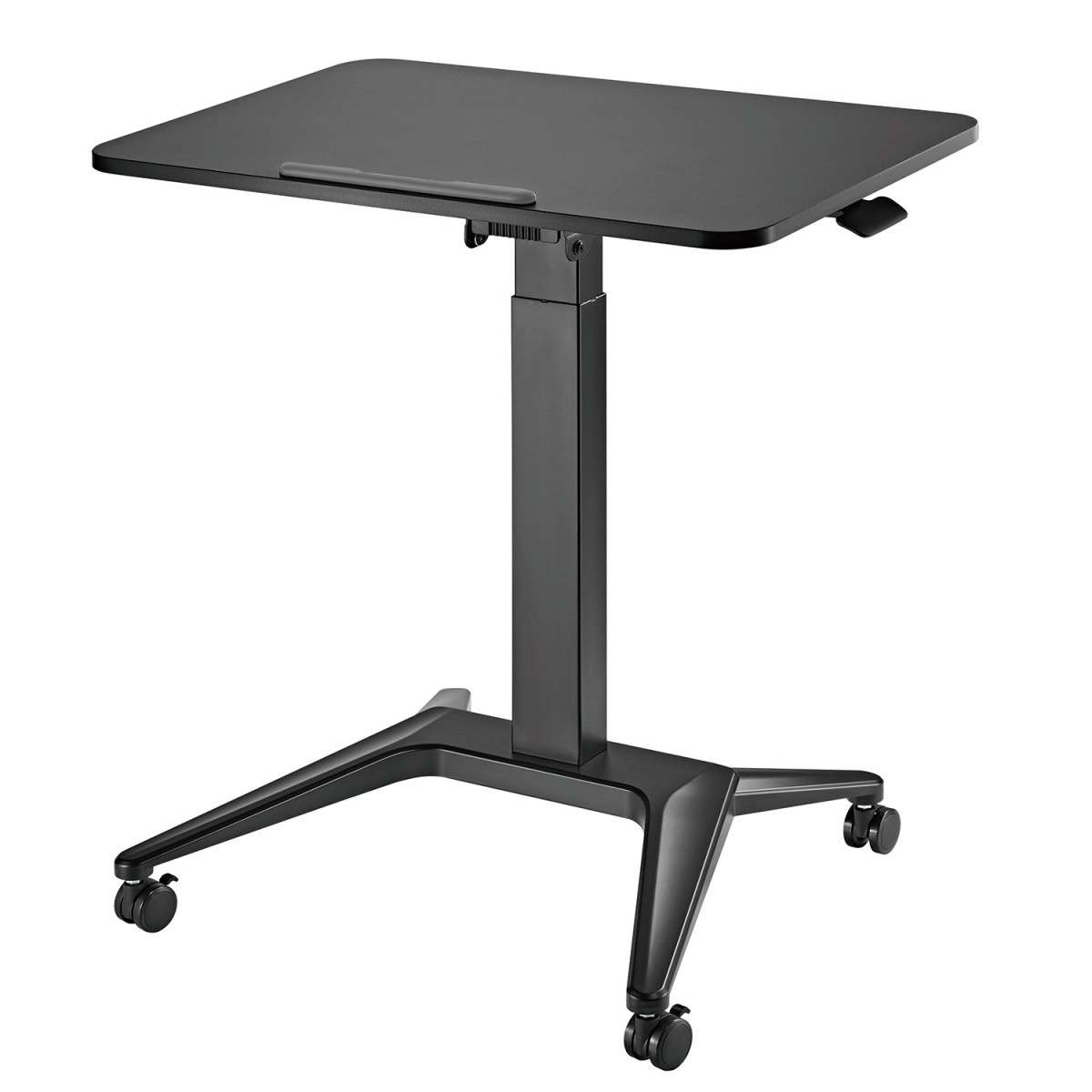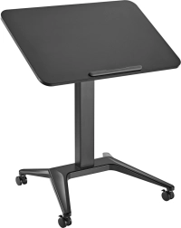 Oplev frihed i bevægelse under arbejdet. Det mobile bord til bærbar computer med trinløs pneumatisk højderegulering 76–109 cm og mulighed for justering af bordpladens hældning sikrer et komfortabelt og sundt arbejdsmiljø. Du kan nemt tilpasse positionen til skrivning, læsning eller tegning.