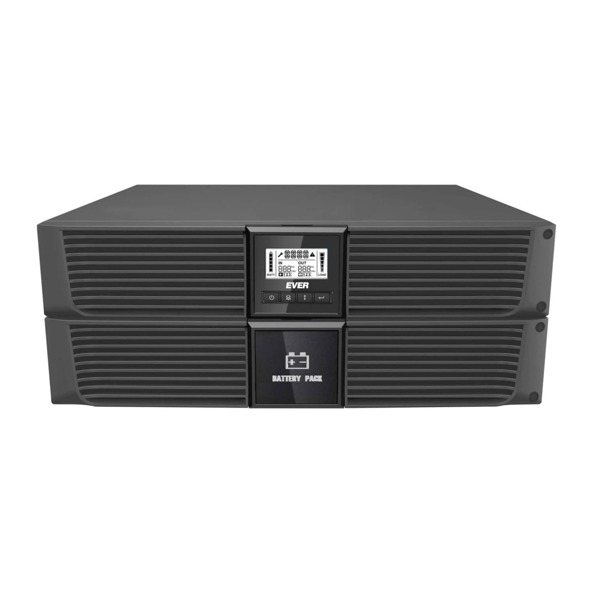 Til krævende miljøer tilbyder UPS’en styring af to udgangssektioner, funktionen Start‑on‑battery (koldstart), EPO – nødfjernafbrydelse og et bredt indgangsspændingsvindue. Kommunikation via USB HID og RS232, valgfrit via SNMP/HTTP eller potentialfrie kontakters kort. Brugeren kan foretage batteriskift og tilslutte op til 10 eksterne batterimoduler for markant forlænget backup‑tid.