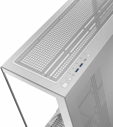 Stilrent hvidt PC-kabinet VOLCANO Stellar Midi NF med “akvarie”-design i hærdet glas tilbyder fremragende airflow, understøttelse af vandkøling op til 360 mm, vertikal GPU-montering og moderne I/O med USB‑C. Takket være en justerbar, nedklappelig ramme til en 120 mm blæser blæses kold luft direkte på grafikkortet, hvilket giver lavere temperaturer og mere stille drift. Leveres uden forinstallerede blæsere for fuld frihed i konfigurationen.