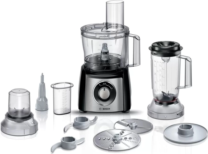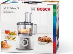 BOSCH MultiTalent 3 køkkenmaskinen er den ideelle hjælper i ethvert køkken. Det kompakte kabinet, den kraftige motor og det omfattende sæt af tilbehør sørger for skæring, hakning, rivning, blanding og æltning. Takket være smart opbevaring af tilbehøret direkte i skålen har du altid alt ved hånden, og forberedelsen af opskrifter bliver hurtig og overskuelig.