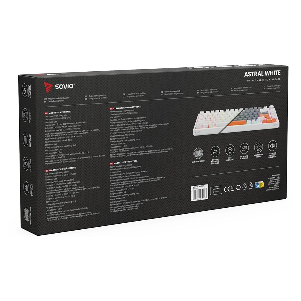 ASTRAL WHITE bringer en revolution til gaming og skrivning: berøringsfri magnetiske switches med Hall-sensor giver ekstrem hastighed, glid og lang levetid på op til 100 millioner tastetryk. Det kompakte layout med 82 taster sparer plads til musen uden at gå på kompromis med funktionalitet.