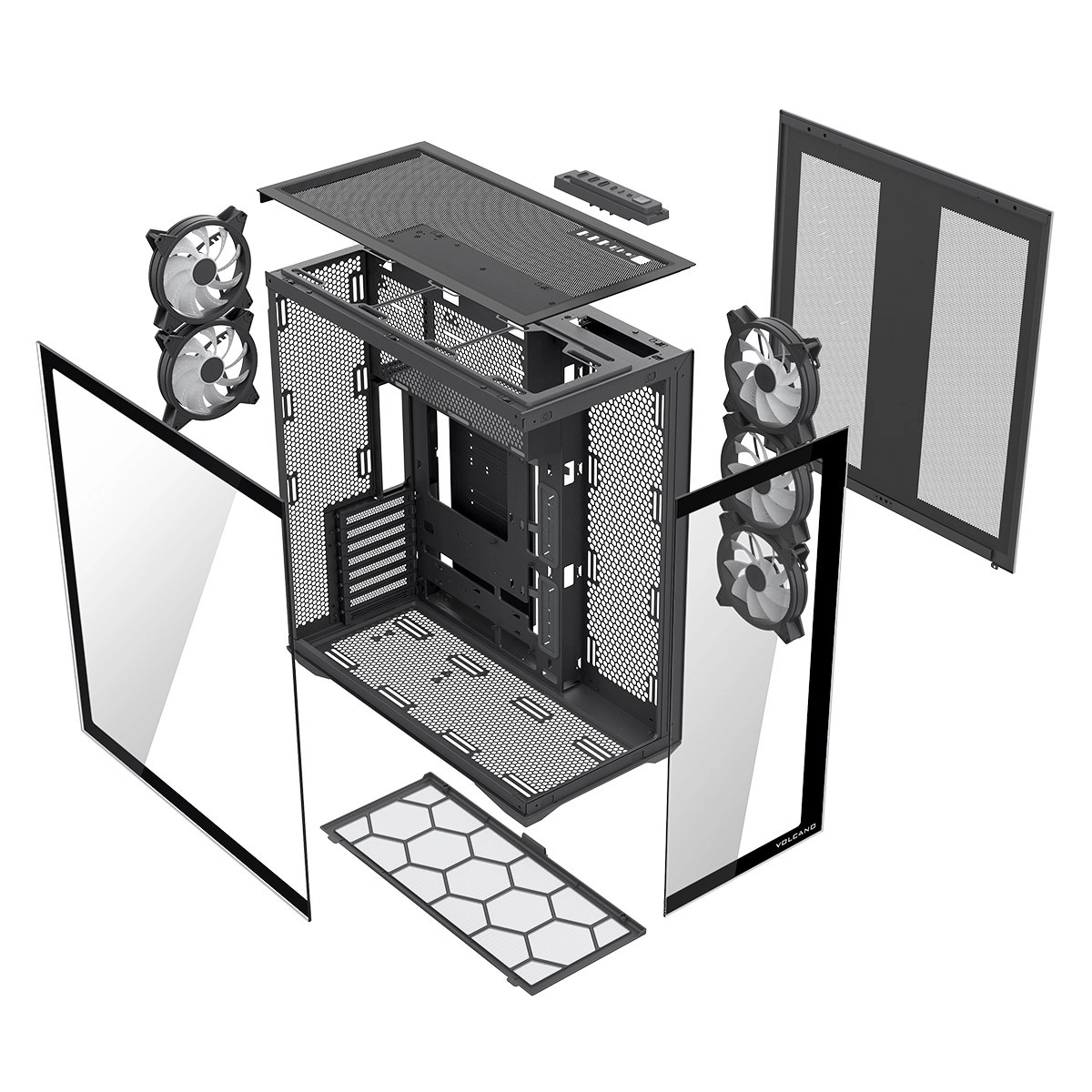 MODECOM Volcano Space XL er et generøst full tower-kabinet designet til krævende gamere og skabere. For- og sidepanel i hærdet glas giver en attraktiv udstillingseffekt, så dine komponenter og ARGB-belysning træder frem fra alle vinkler. Takket være quick-release lukkemekanismer er adgangen indvendigt nem – montering, opgraderinger og rengøring klares på ingen tid.