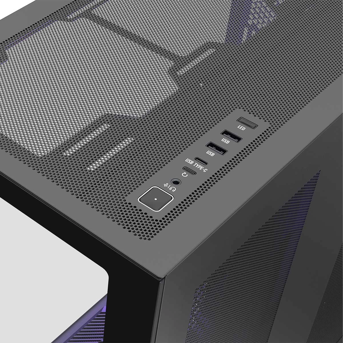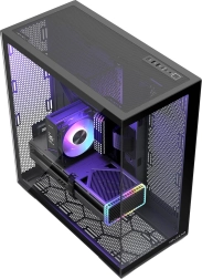 Omfattende mesh-sektioner og plads til radiatorer op til 420 mm sikrer fremragende airflow og stille drift. NF-varianten lader dig selv vælge blæsere.