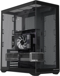 Chassiset tilbyder generøs plads til kraftige builds: E-ATX-bundkort, lange GPU’er, flere lagringsenheder og massive radiatorer op til 420 mm. Praktiske snap-on paneler gør det hurtigt at åbne, skifte komponenter og rengøre. Volcano Space XL NF leveres uden forinstallerede blæsere, så du kan konfigurere luftstrøm og køling præcis efter dine præferencer.