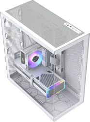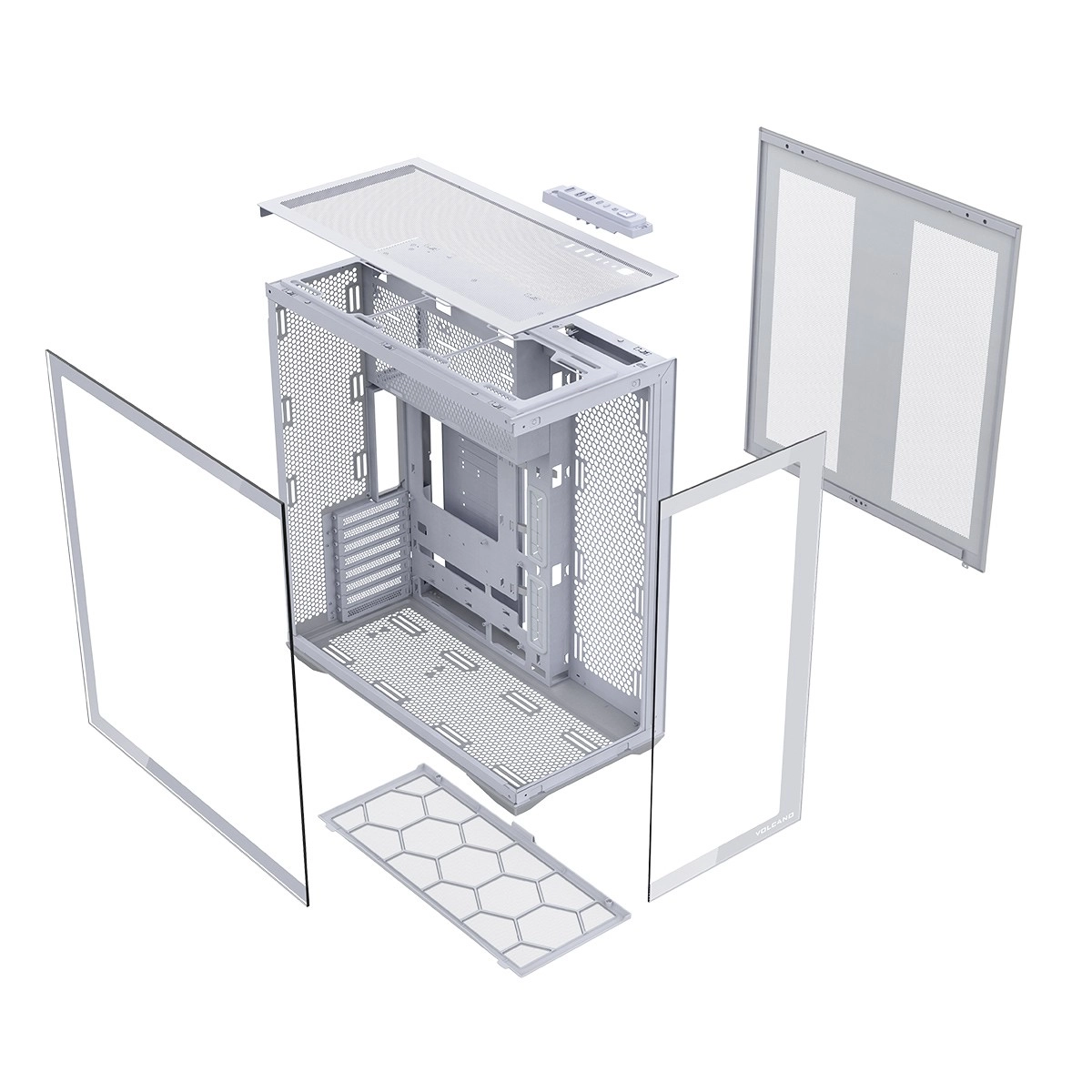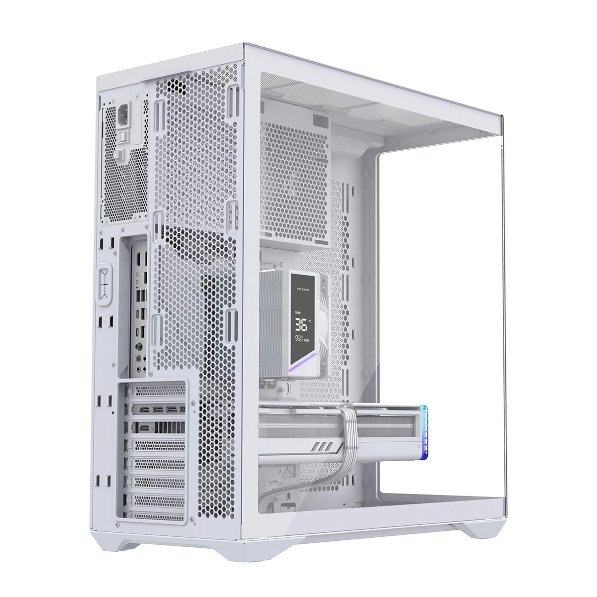 Takket være det rummelige interiør kan du nemt montere store E-ATX-bundkort, lange grafikkort og robust vandkøling på op til 420 mm. Paneler med snaplåse accelererer montage, vedligeholdelse og opgraderinger. Variationen uden forudinstallerede blæsere giver dig friheden til at konfigurere kølingen præcis efter dine præferencer – uanset om du foretrækker maksimal airflow eller stille drift.