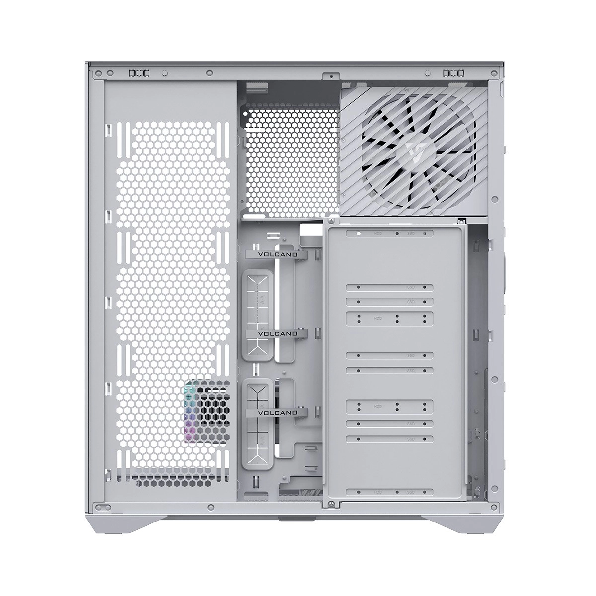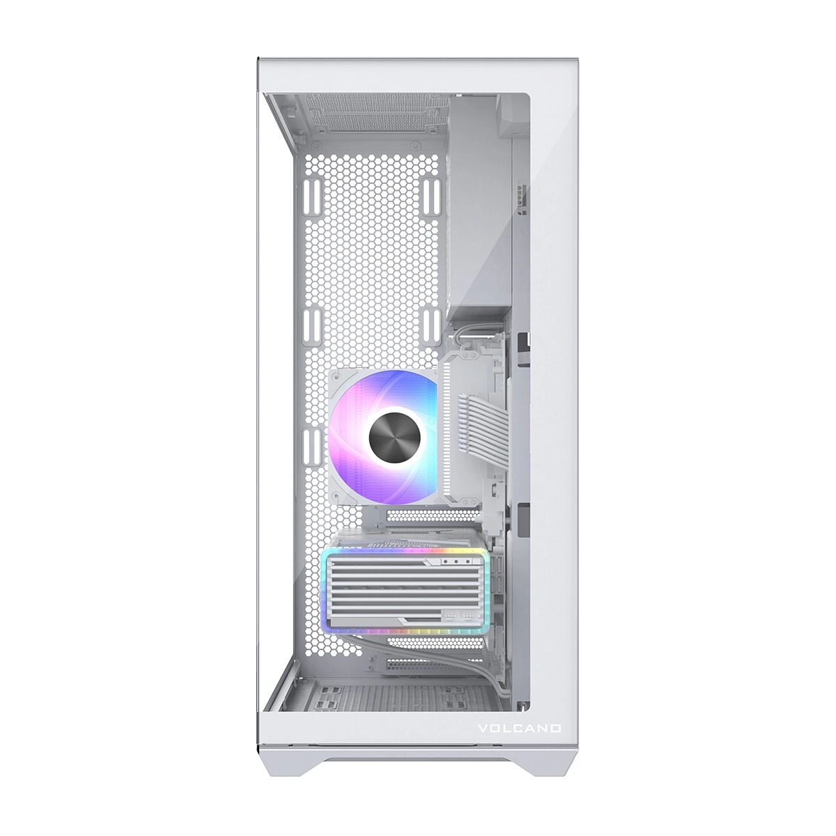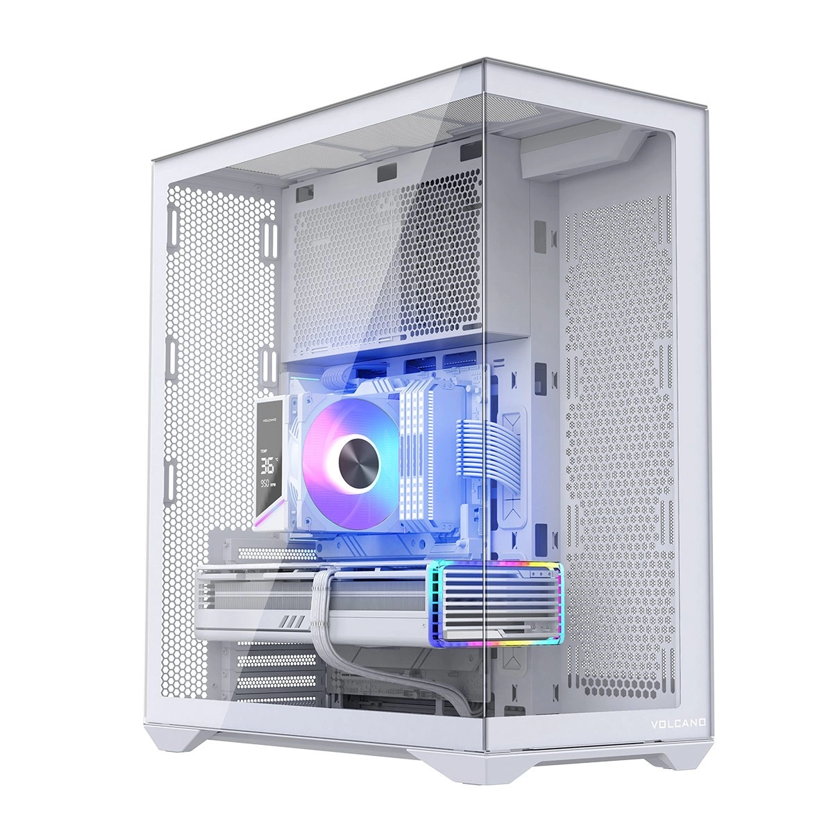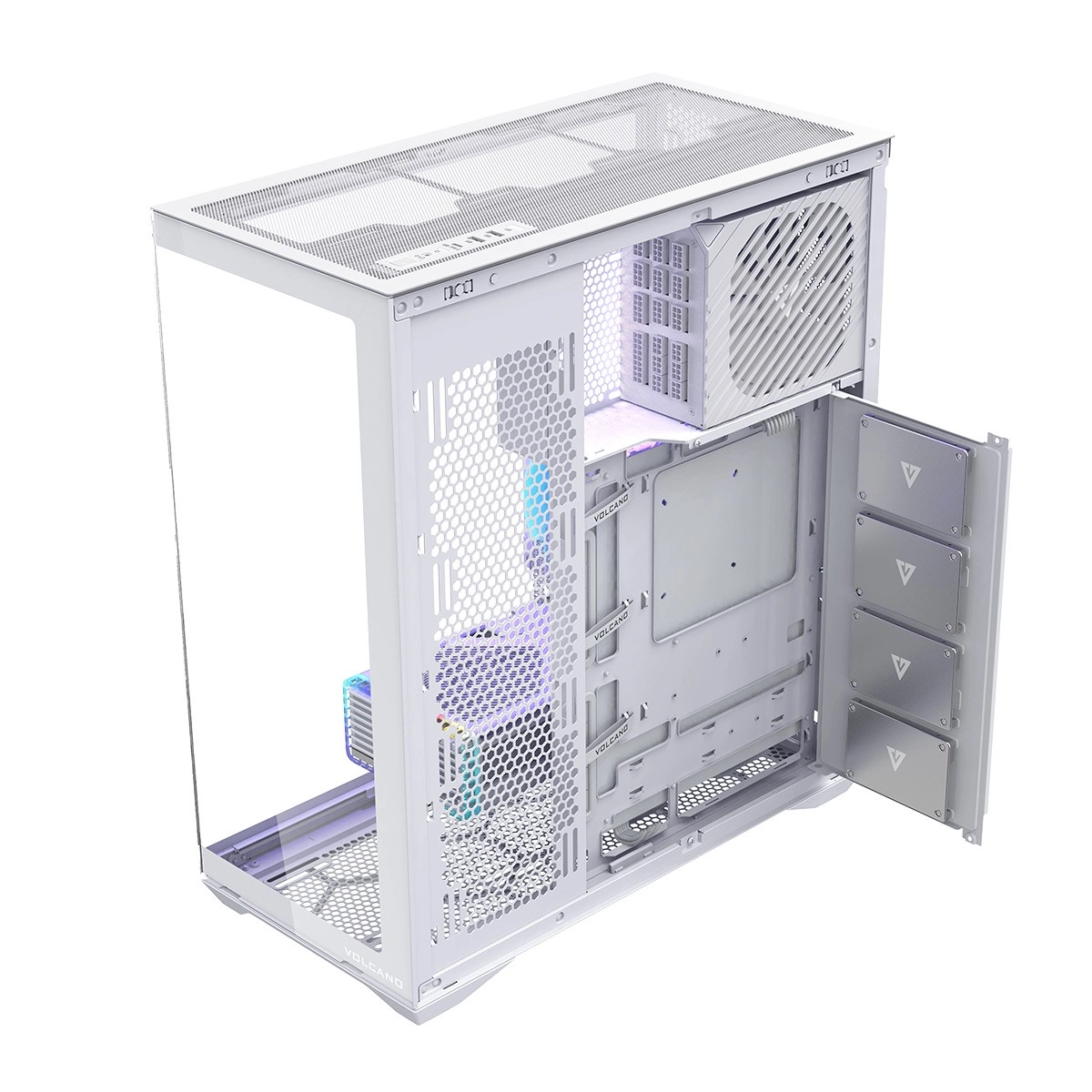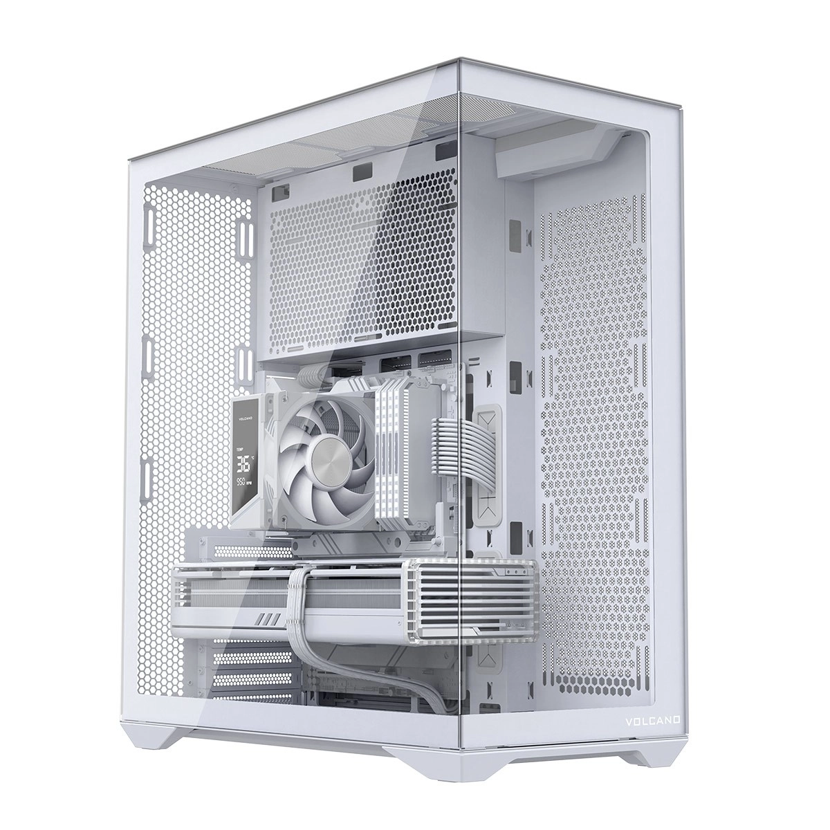 Byg et kraftigt og æstetisk rent system, der ikke gemmer sig væk. MODECOM Volcano Space XL fremhæver hver detalje med front- og sidepanel i hærdet glas, mens gennemtænkt luftstrøm og førsteklasses kølingsmuligheder holder temperaturerne i skak selv for de mest krævende komponenter. Kabinettet er designet til fejlfri kabelmanagement og moderne builds med bundkort med omvendte stik.