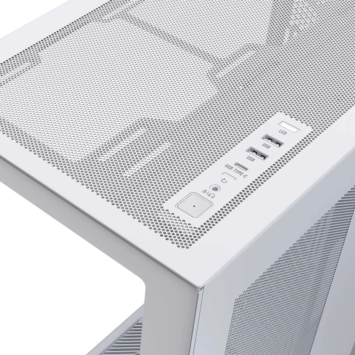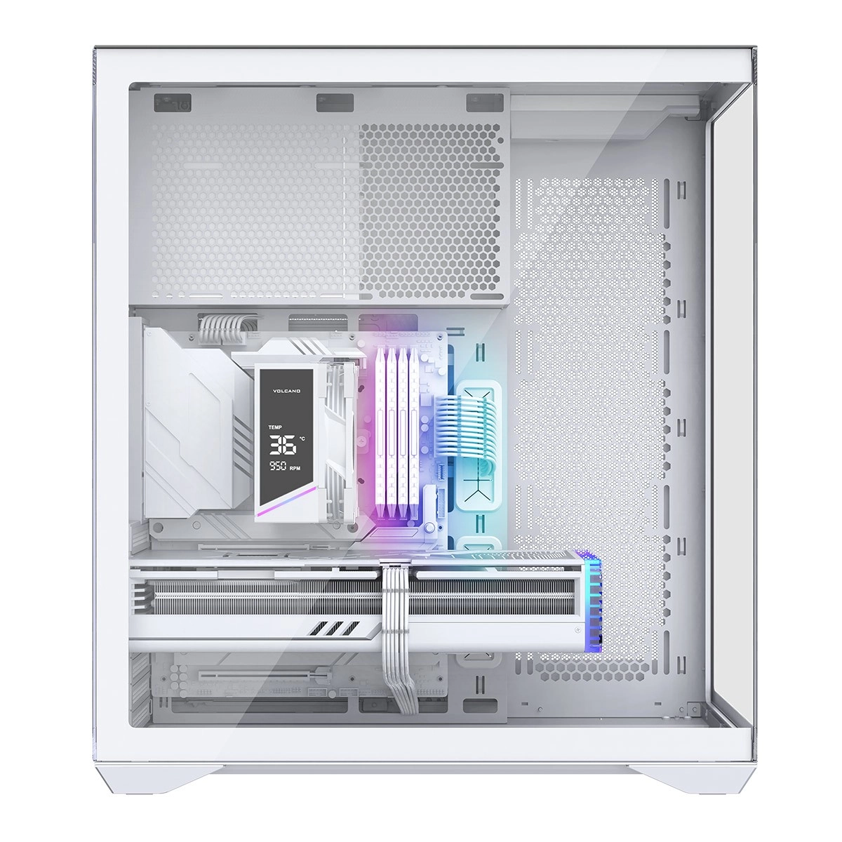 - Hærdet glas foran og på siden for fremragende præsentation af komponenter og ARGB-effekter