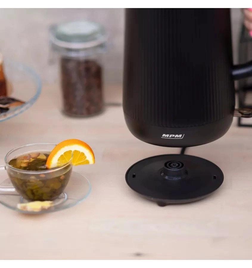 En stilfuld trådløs elkedel med dobbelt væg, som holder vandet varmt længere og sikrer støjsvag drift. Den indvendige samlingsfrie beholder i rustfrit stål bevarer drikkenes naturlige smag, mens det ikke-opvarmende kabinet i rillet plast er sikkert at røre ved og giver et skridsikkert greb. Ideel til daglig brygning af te, kaffe og urtete.