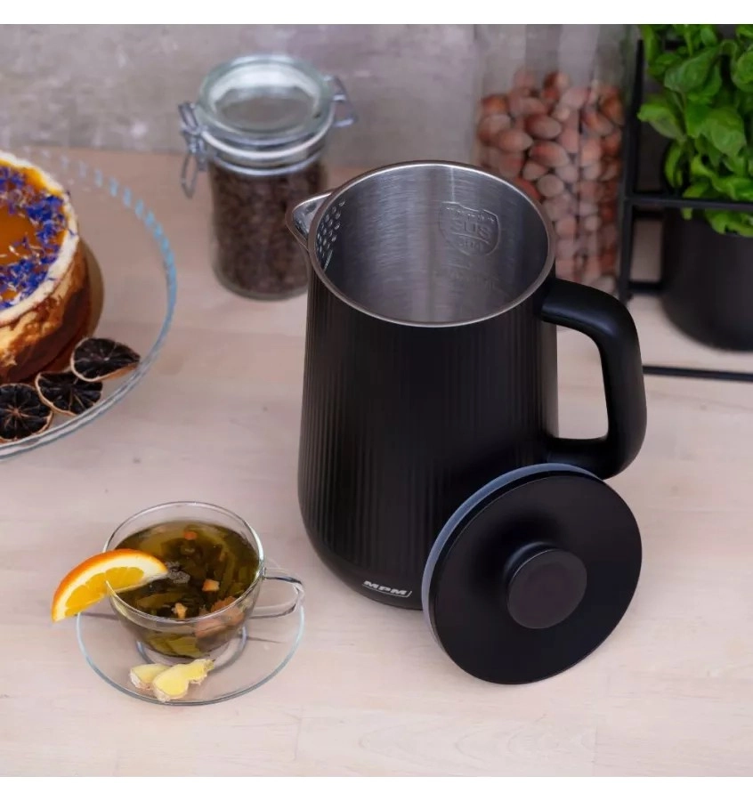 Den éndelte beholder i rustfrit stål eliminerer risikoen for utætheder og påvirker ikke drikkenes smag. Ideel til te, kaffe og urter.