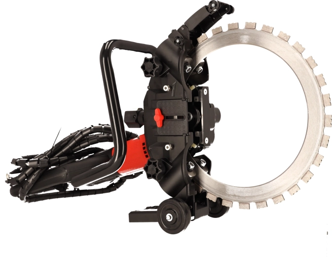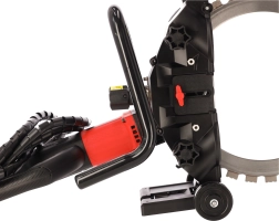 Beskyttelsesskjold, vand-/kølesystem og styrehjul øger sikkerheden, reducerer støv og forbedrer snitføringen.