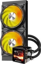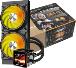 Oplev stabile temperaturer og stille drift selv i højtydende systemer. Explore DE240 kombinerer en 240 mm radiator, en kvalitets vandblok med kobberkontaktflade og to 120 mm PWM-blæsere med højt lufttryk. Den integrerede 2,88" IPS-skærm (480 × 480 px) viser temperaturer, omdrejninger og ydelse, og takket være den magnetiske holder kan du nemt afmontere den og placere den på kabinettets metaloverflade.