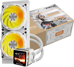 Opgrader kølingen i din gaming- eller arbejds‑PC med DarkFlash Explore DE240 i hvid. Den aftagelige 2,88" IPS‑skærm (480 × 480 px) med magnetisk montering gør det muligt at overvåge temperaturer, omdrejninger og andre data i realtid og placere displayet præcis dér, hvor det passer dig. Den dedikerede software tilbyder temaer, synkronisering og endda AR‑visualiseringer.
