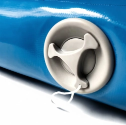 Den praktiske ventil gør det muligt at puste op på ca. 3–4 minutter og tømme lige så hurtigt. Hårdheden tilpasses nemt via mængden af luft og tryk.