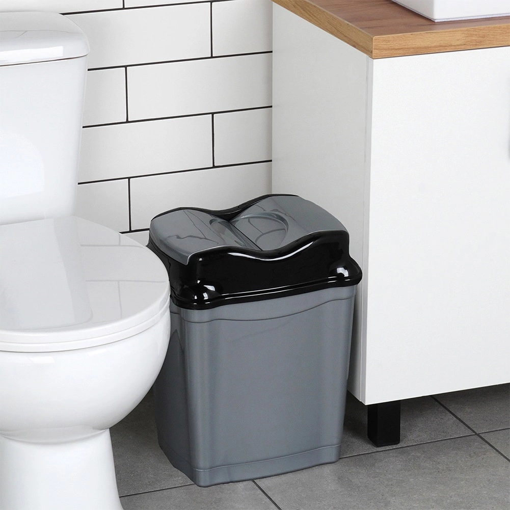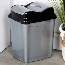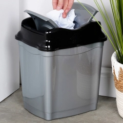 Praktisk affaldsspand på 16 liter i grå med blankt sort vippe-låg er ideel til køkken, badeværelse, hjemmekontor og venteområder. Det holdbare plastmateriale sikrer lang levetid og lav vægt, så spanden er nem at håndtere og enkel at holde ren.