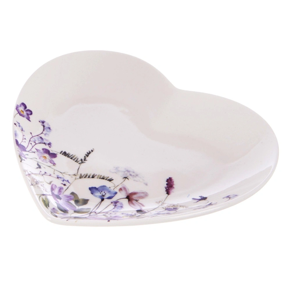 Den elegante porcelæn tallerken formet som et hjerte fra kollektionen LOUKA er ideel til servering af desserter, slik og små snacks. Fremstillet af kvalitetsporcelæn med et fint blomstermønster, tåler opvaskemaskine og mikrobølgeovn og fuldender ethvert bord smukt.