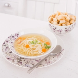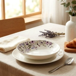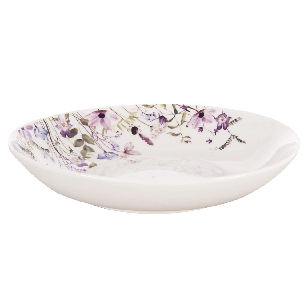Takket være den passende dybde og kapacitet på 600 ml kan du nemt servere supper, cremer, pasta eller müsli. Kvalitetsporcelæn er holdbart og let at vedligeholde – tallerkenen kan gå i opvaskemaskinen og tåler opvarmning i mikroovn. Den klassiske runde form og blomsterdekoret kan let kombineres med resten af dit stel.