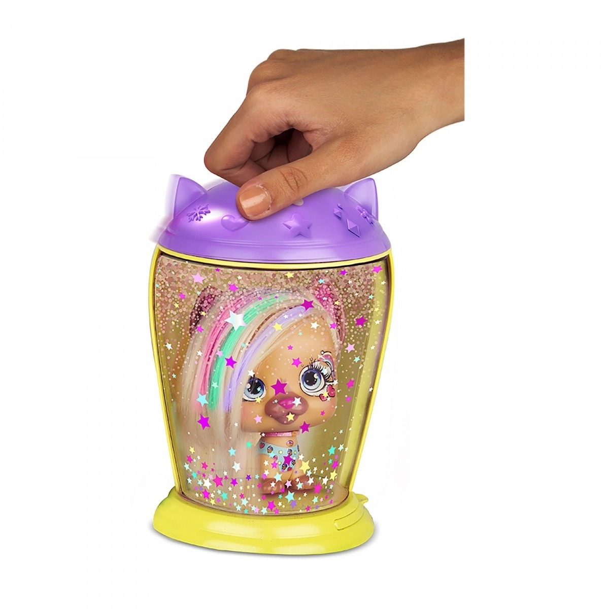 Placer figuren i kammeret, aktiver låget, og se håret lyse op med stjerner og glimmer.