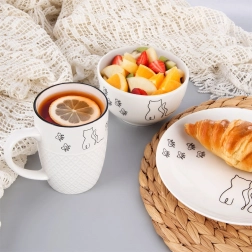 Det elegante krus i kvalitetsporcelæn i hvid er dekoreret med en fin kattegrafik, som giver borddækningen et legende præg. Med en kapacitet på 380 ml er det ideelt til en stor morgenkaffe eller eftermiddagste. Den klassiske form og det behageligt formede håndtag sikrer et komfortabelt greb i hverdagen.