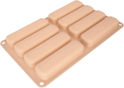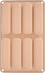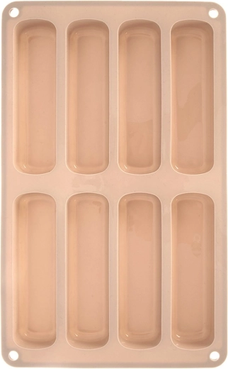 Formen med otte aflange fordybninger bager jævnt og skaber ensartede portioner, velegnet til tiramisu, desserter og pynt.