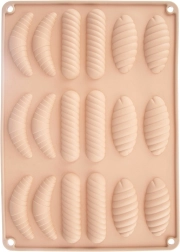 Denne beige silikoneform er ideel til hjemmebag af småkager, minikager samt fremstilling af praliner og ubagte desserter. Takket være det fleksible og non-stick materiale kan de færdige stykker nemt tages ud uden at miste formen, og formen er derefter let at rengøre.