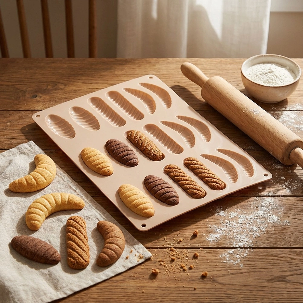 Multihulsformen gør det muligt at bage eller støbe 18 småkager eller praliner på én gang – ideel til hurtig og ensartet tilberedning.