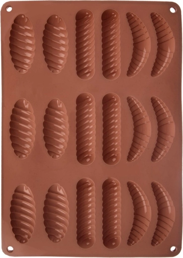 Det elastiske materiale sikrer nem udtagning af bagte eller afkølede stykker uden at knække eller brænde på. Ideel til jævnt formede horn og praliner.