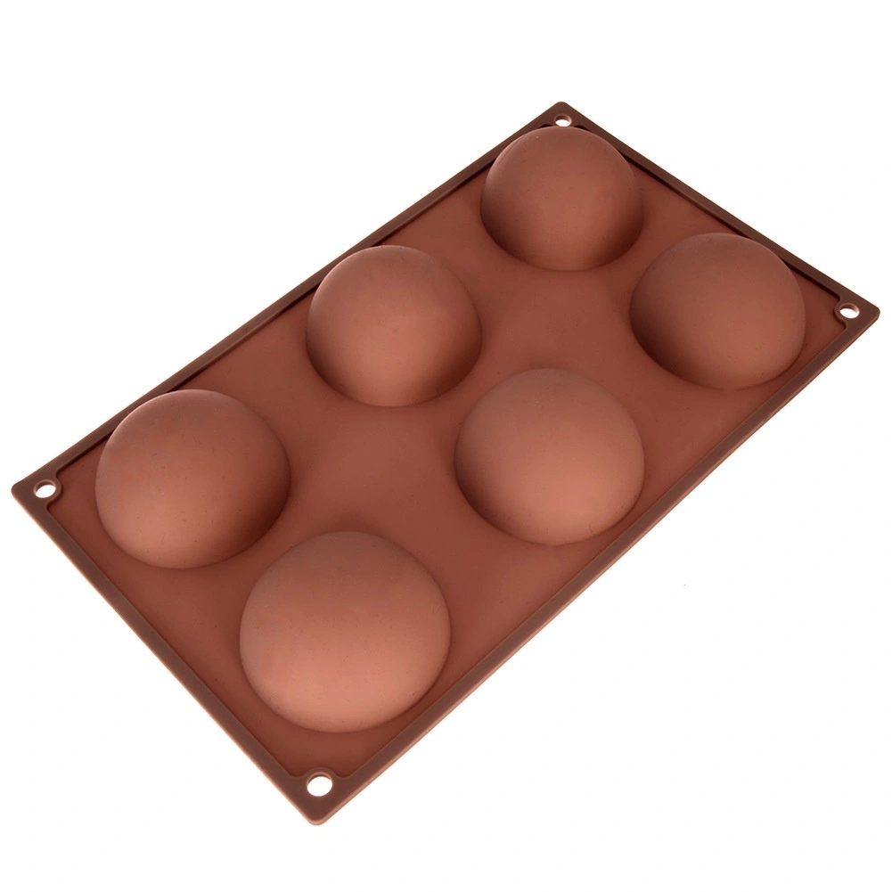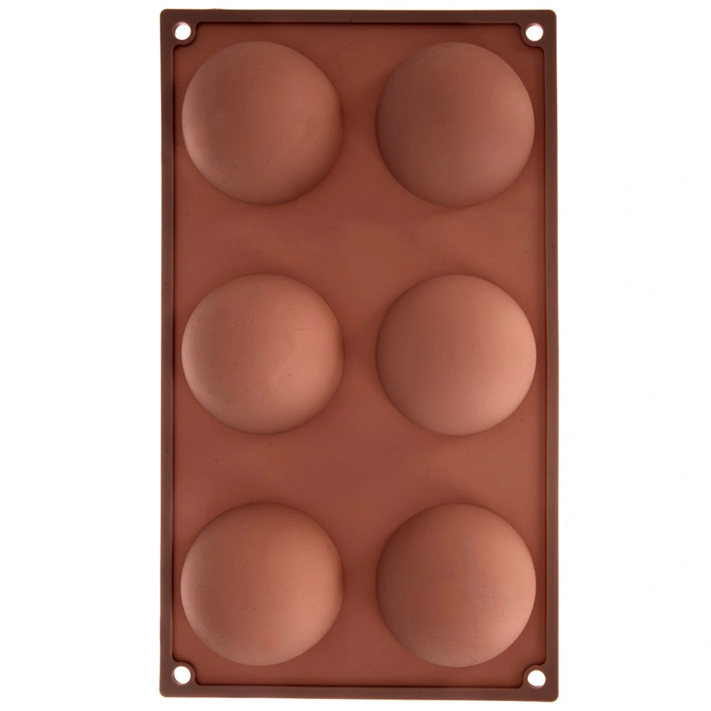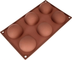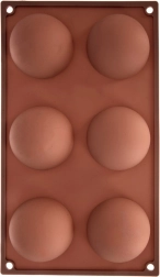 Denne brune silikoneform med seks halvkugleformede hulrum er ideel til kolde desserter og bagte bunde. Takket være den non-stick overflade kan desserterne nemt tages ud uden at miste formen, og formen absorberer hverken lugte eller smage.