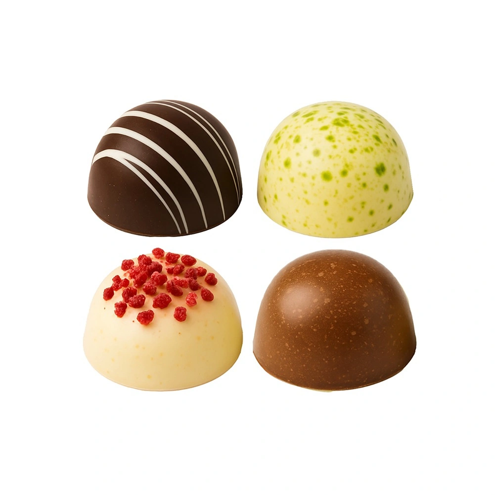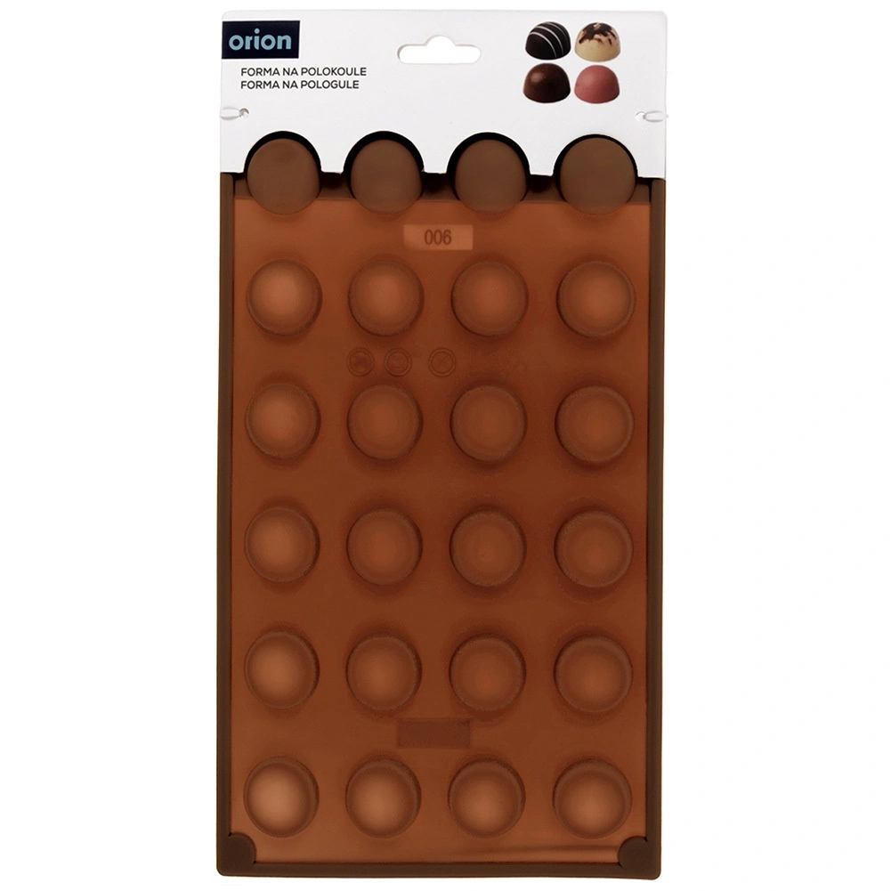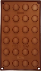 Formen har 24 halvkugleformede fordybninger med en diameter på ca. 2,8 cm – ideel til praliner, trøfler og mini desserter.