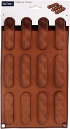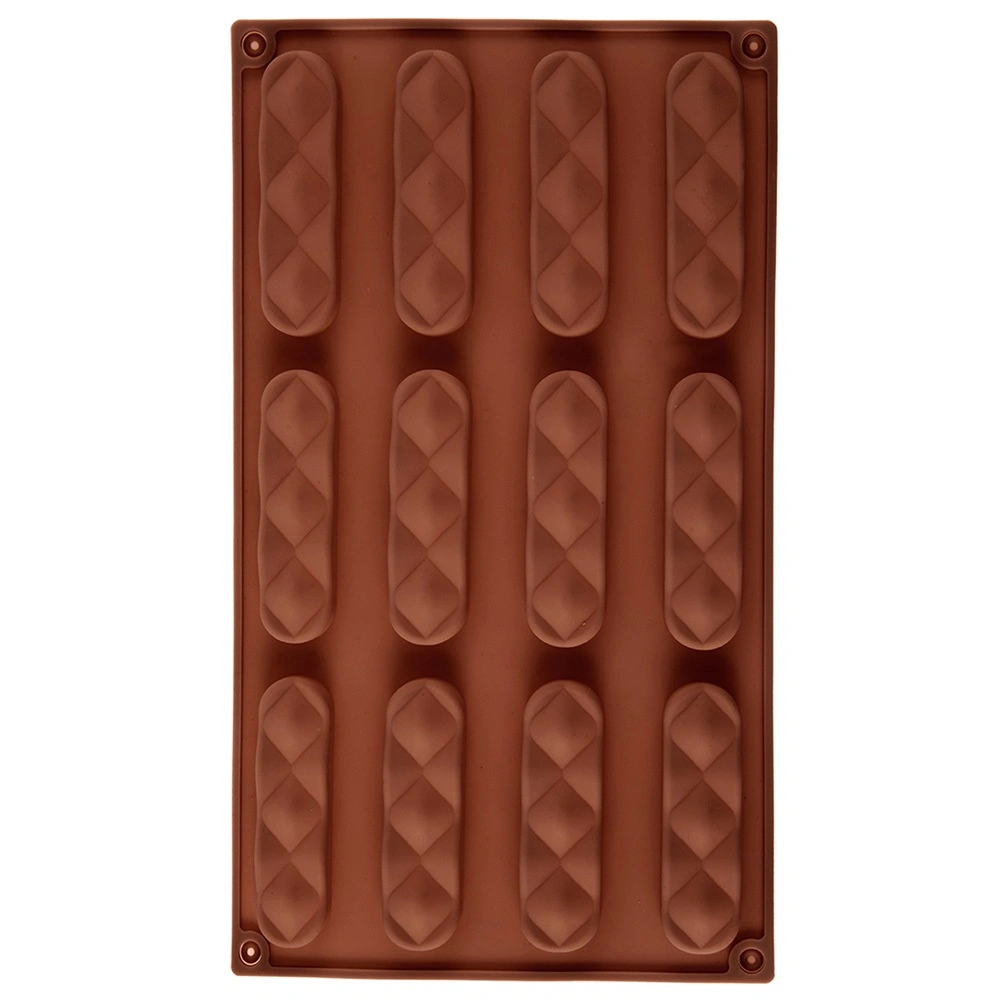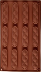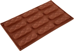 Formen har tolv aflange hulrum med dekorativt mønster, så du kan lave ensartede og æstetiske småkager eller praliner i én omgang.