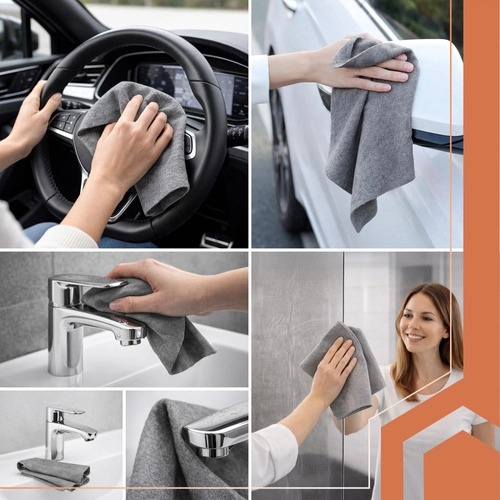 Et praktisk sæt med 3 mikrofiberklude af høj kvalitet, ideelt til rengøring af glas, vinduer, spejle og blanke overflader i hjemmet, på kontoret og i bilen. Den særlige fiberstruktur sikrer en krystalklar overflade uden striber – ofte er vand alene nok.