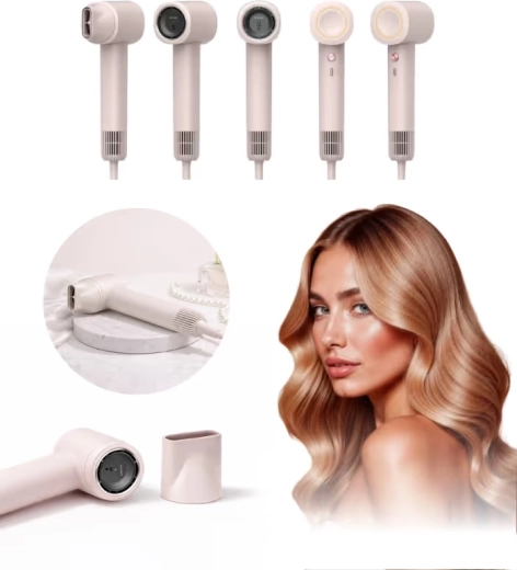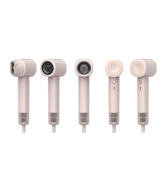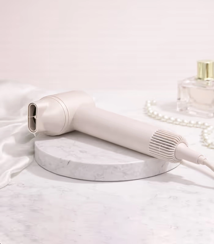 Praktisk cremefarvet 5-i-1 hårtørrer med kraftig BLDC-motor og ionisering for hurtig tørring og et glat, skinnende look uden krus. Udskiftelige mundstykker muliggør tørring, udglatning, volumen og bølger, mens luftstrøms- og temperaturregulering samt kold luft sikrer skånsom og præcis styling hver dag.